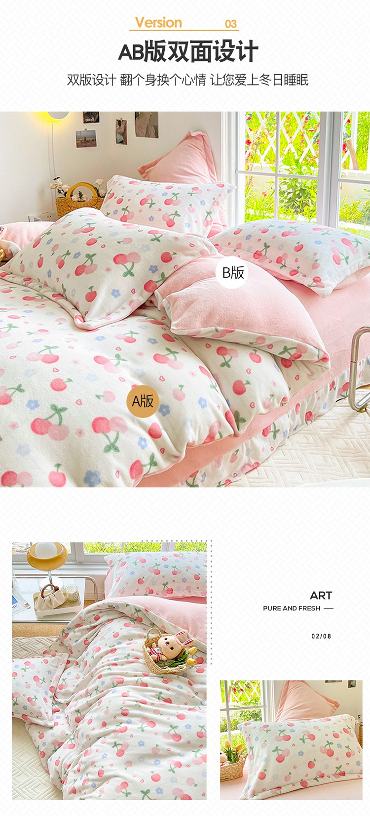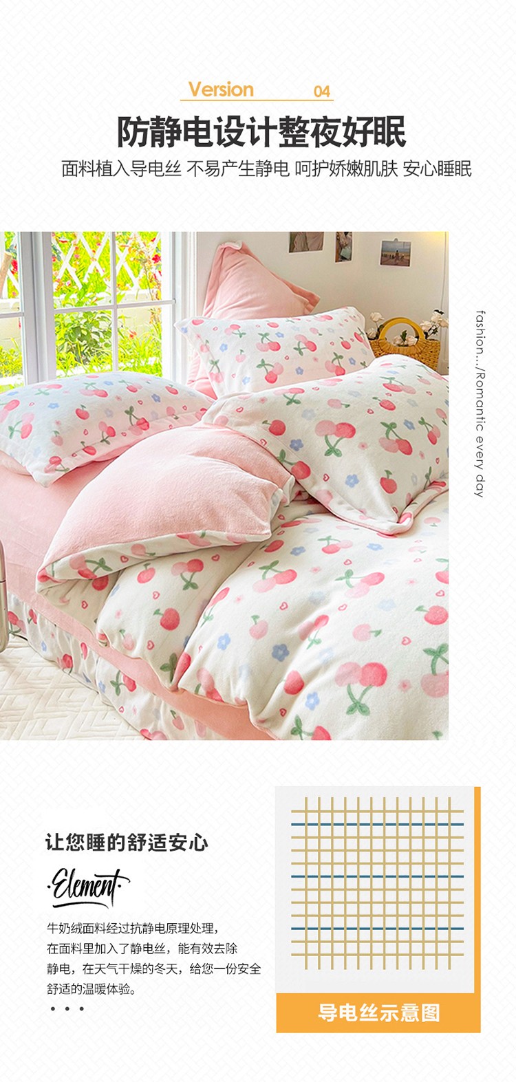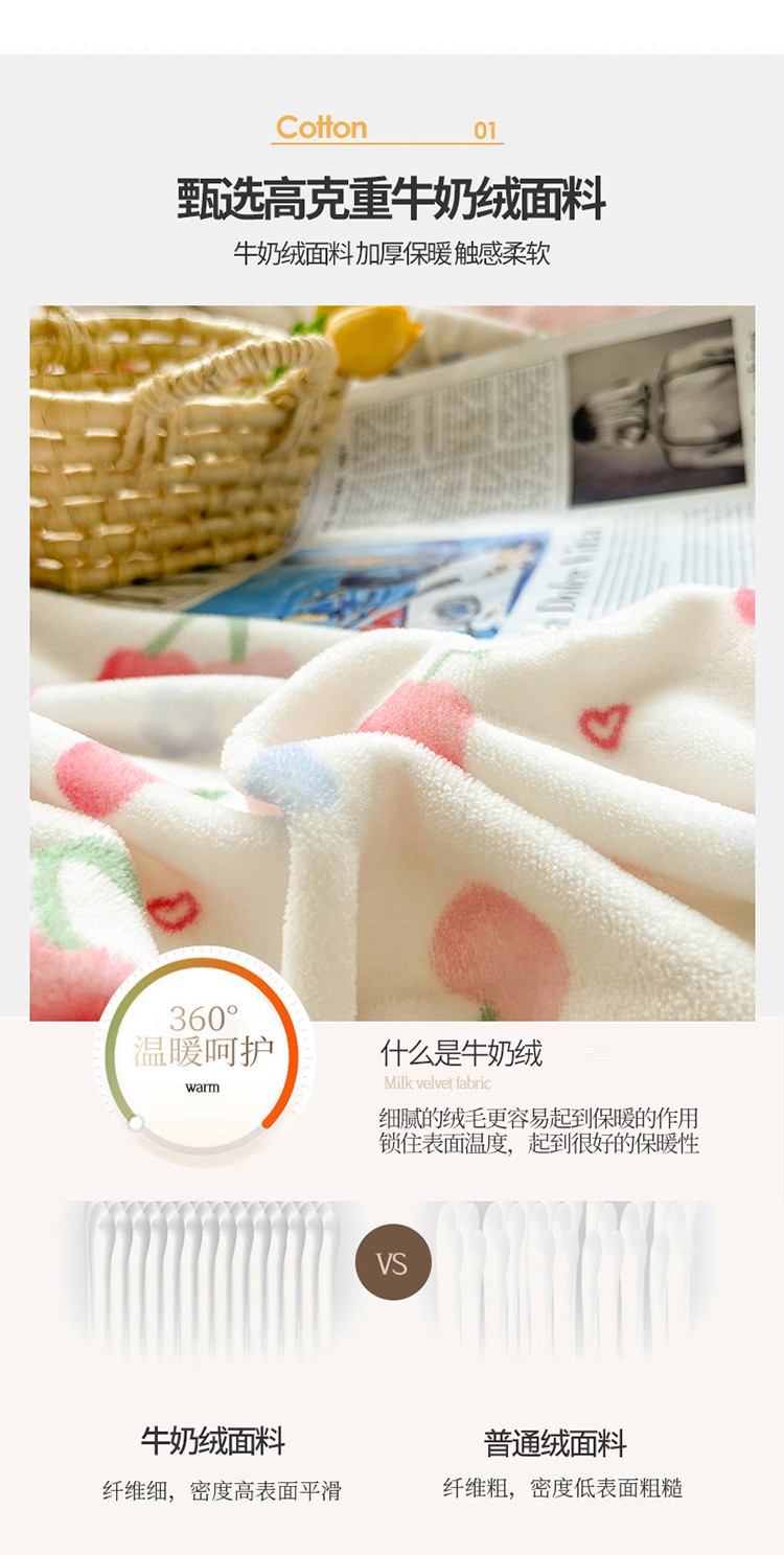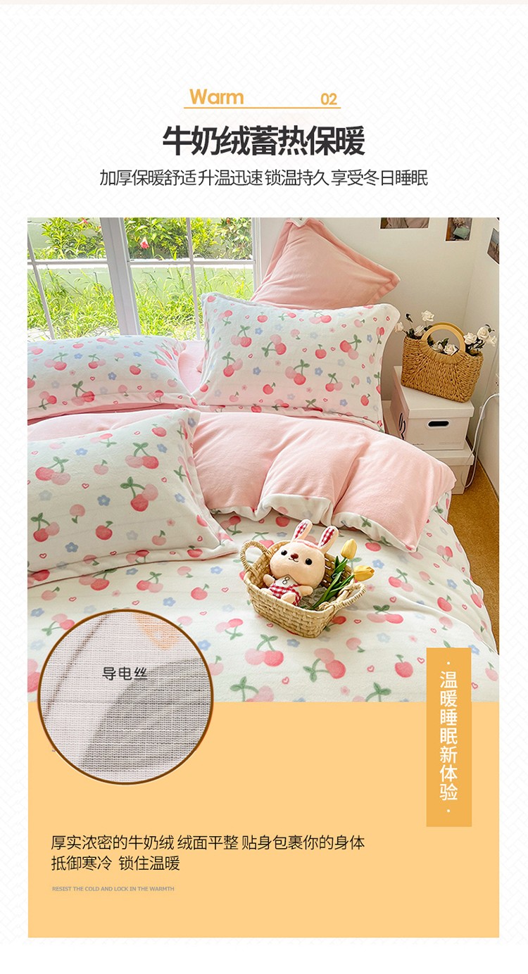 商品名称:呗旺鹿 2022年印花小清新加厚保暖牛奶绒四件套直播元气桃桃