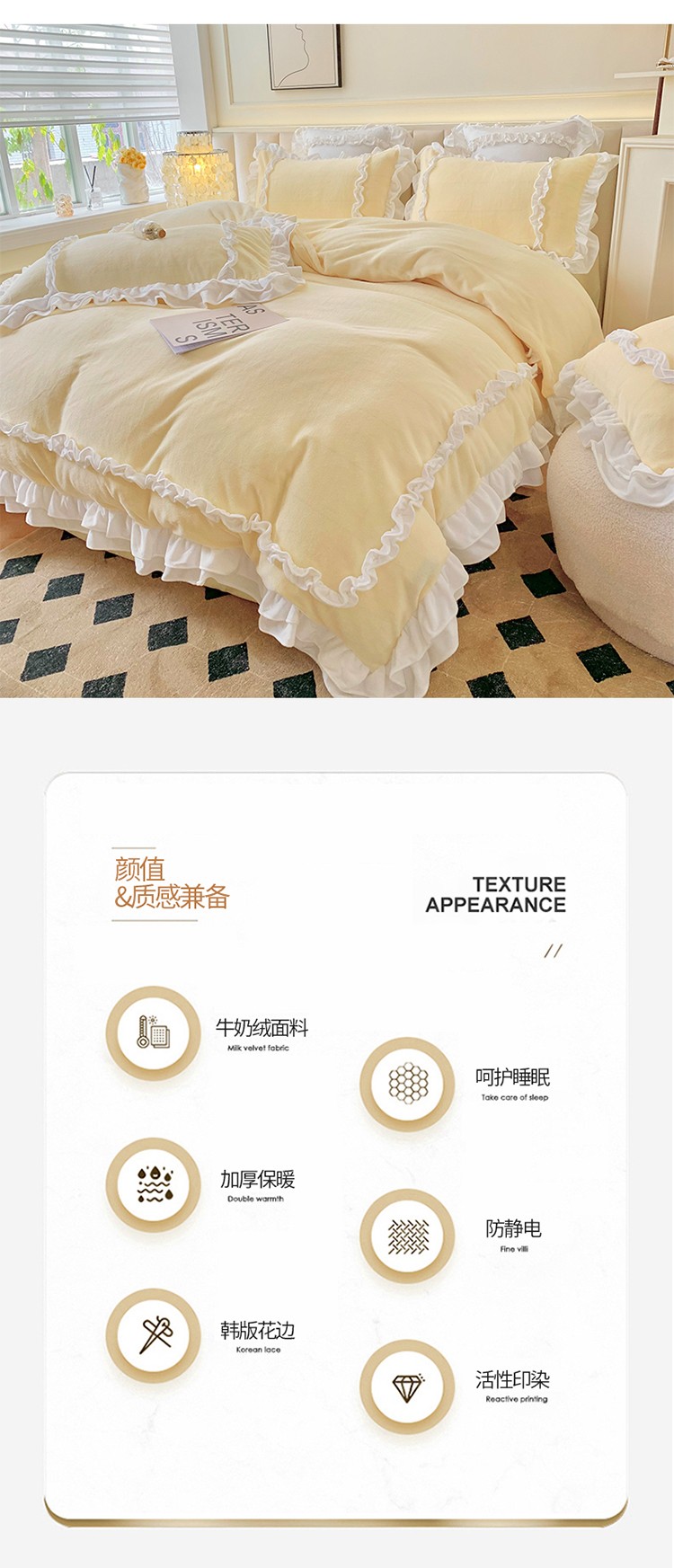 商品名称:(总)吾欢心 2024新款洛丽塔牛奶绒四件套 加厚一套8斤重