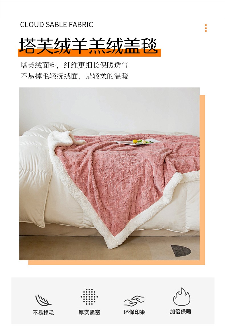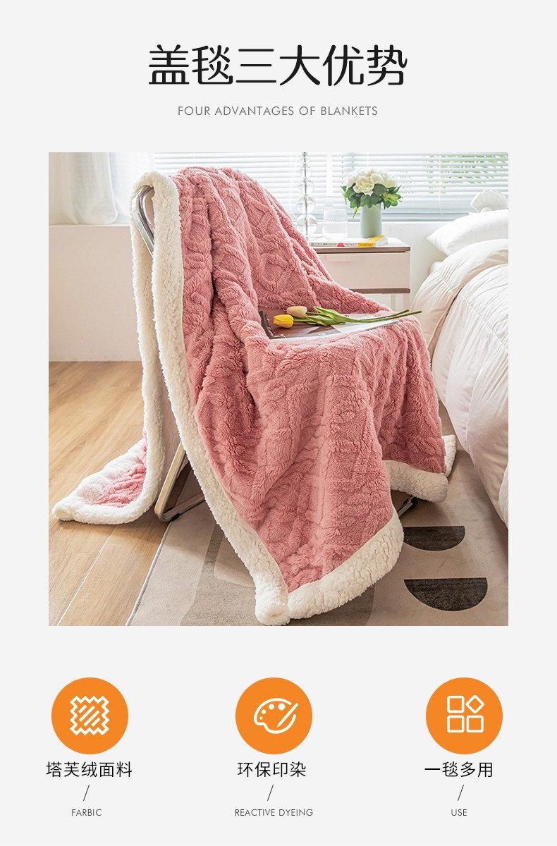 商品名称:网客家纺 2024新款塔芙绒提花羊羔绒盖毯 玫瑰粉