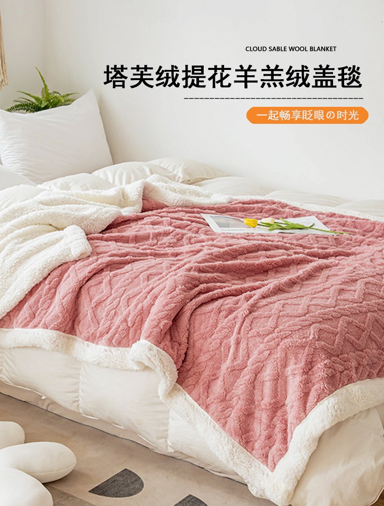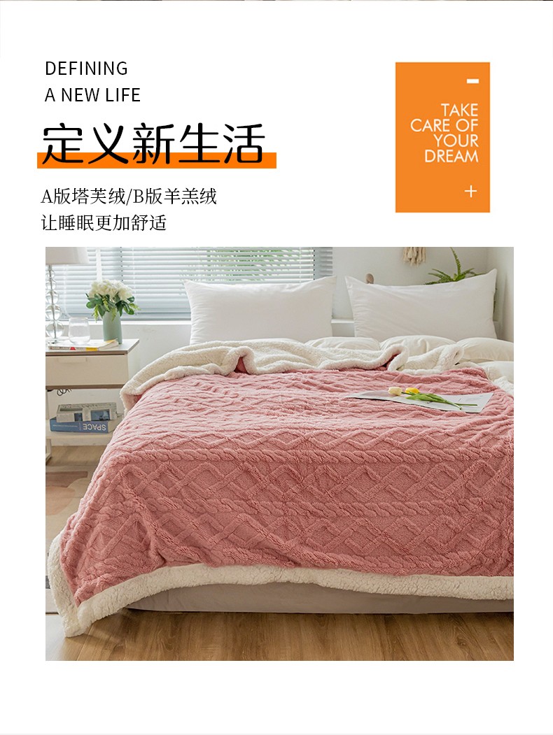 网客家纺 2024新款塔芙绒提花羊羔绒盖毯 玫瑰粉