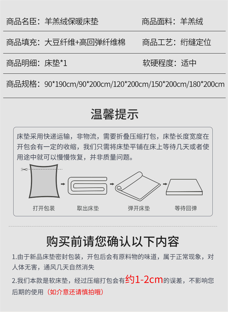 当前位置: 91家纺网 > 商品网购 > 床垫/床褥/床护垫 > 普通床垫 > 美克 2025新款大豆蛋白羊羔绒床垫 立体羊羔绒米白