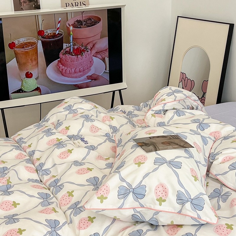 昔可2022新款嵌绳全棉四件套组图二 少女心蝴蝶结