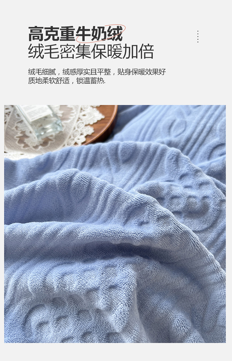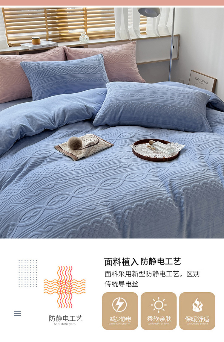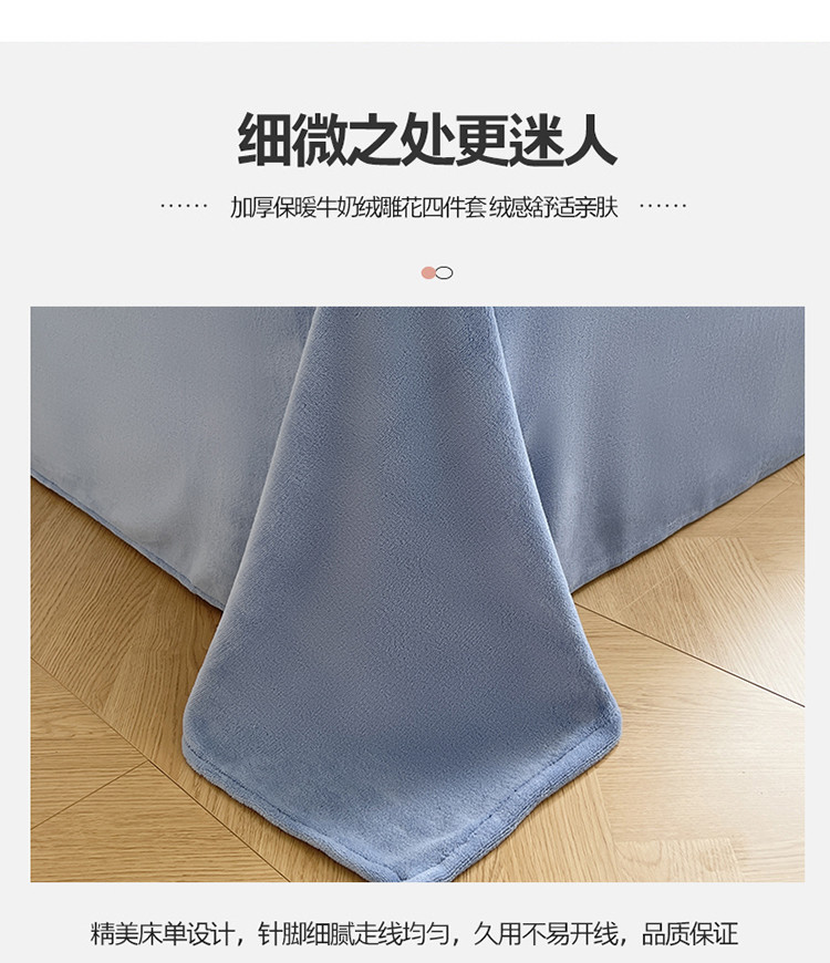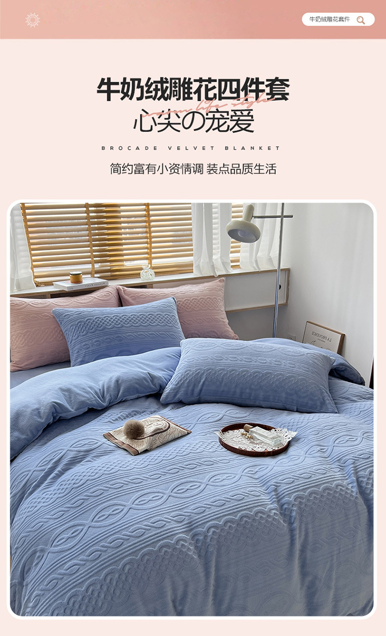 商品名称:N先生2022新款高克重雕花绒牛奶绒四件套 丽莎-蓝