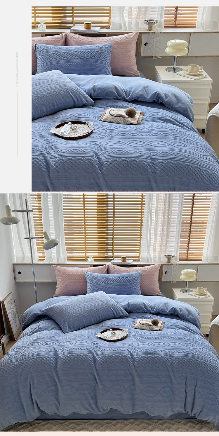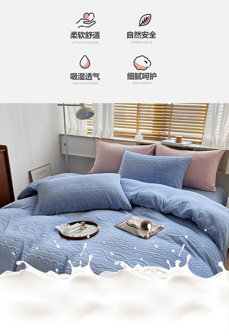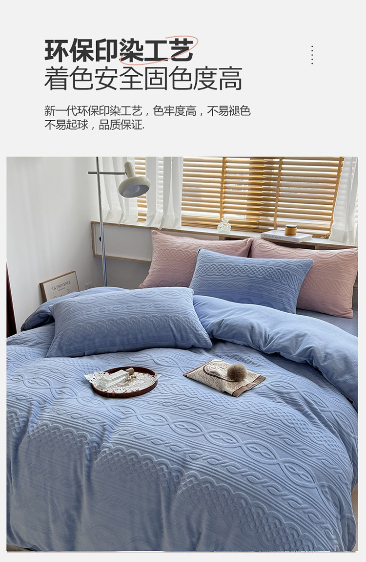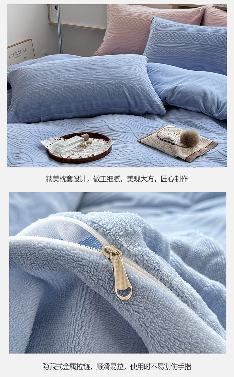 商品名称:N先生2022新款高克重雕花绒牛奶绒四件套 丽莎-蓝