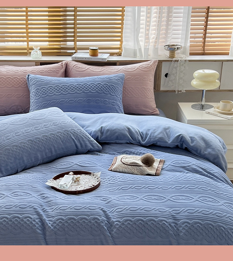 N先生2022新款高克重雕花绒牛奶绒四件套 丽莎-蓝