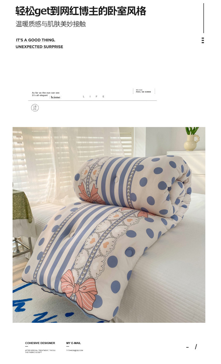 • 91家纺网 家纺一手货源 找家纺 寐居 2022新款针织棉A类超柔保暖冬被 波点蝴蝶结