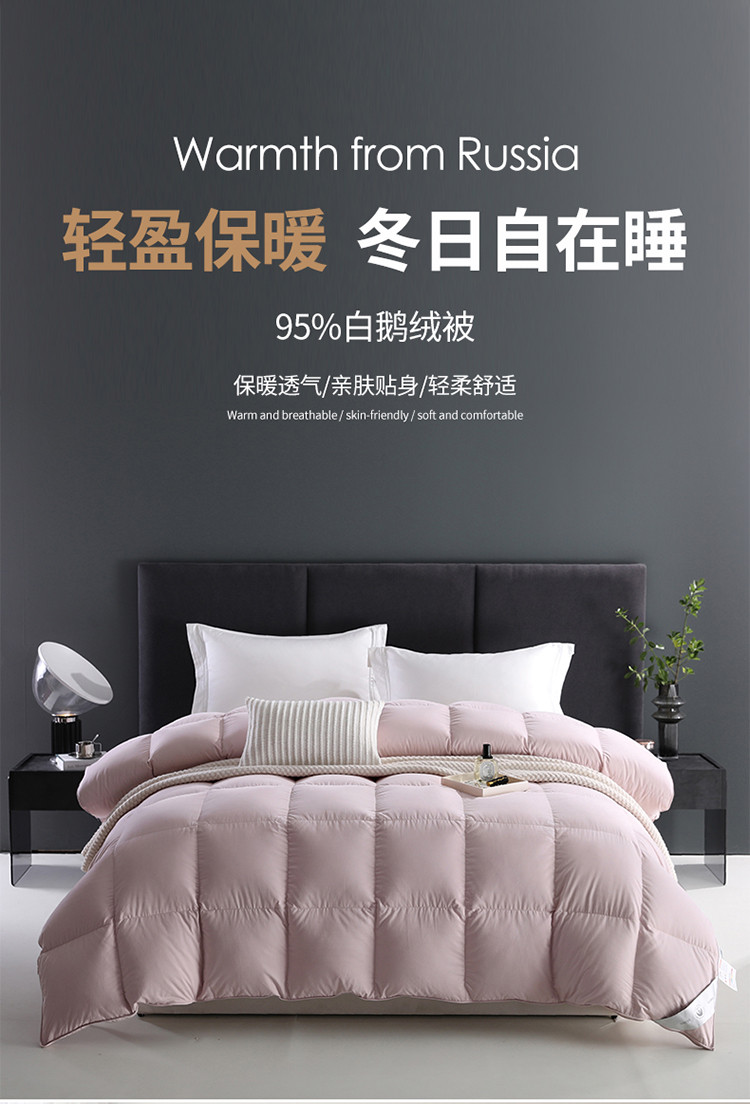 (总)俏企鹅 2025新款糥棉95羽绒被被子被芯,豆沙粉,贵族白,绅士灰,樱花粉,深豆沙色