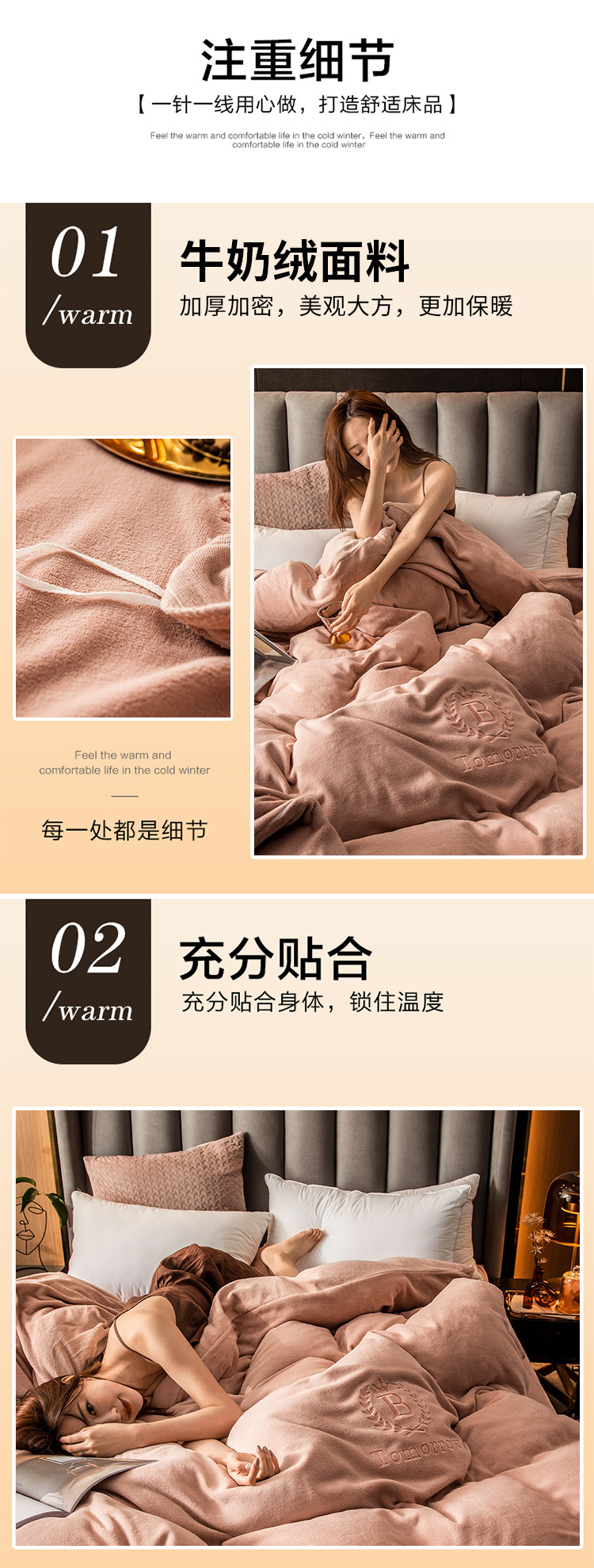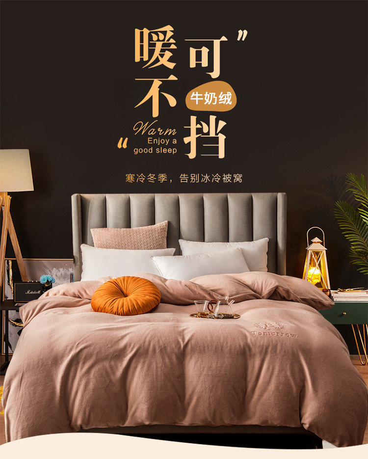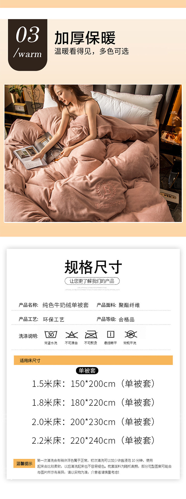 商品名称:丽美人 2022新款加厚保暖纯色简约牛奶绒系列单品被套 湘妃色