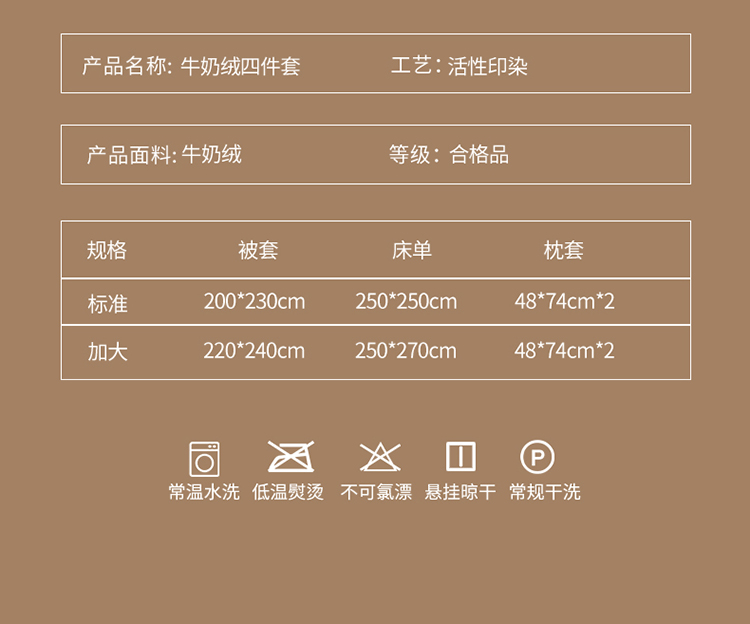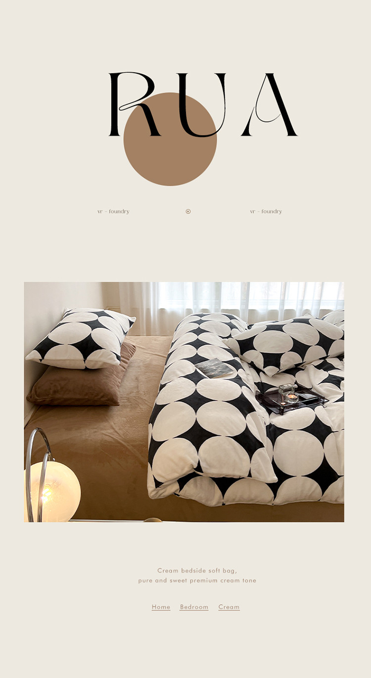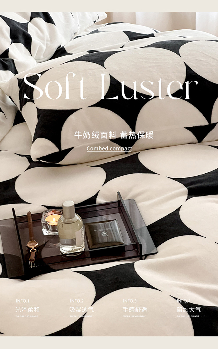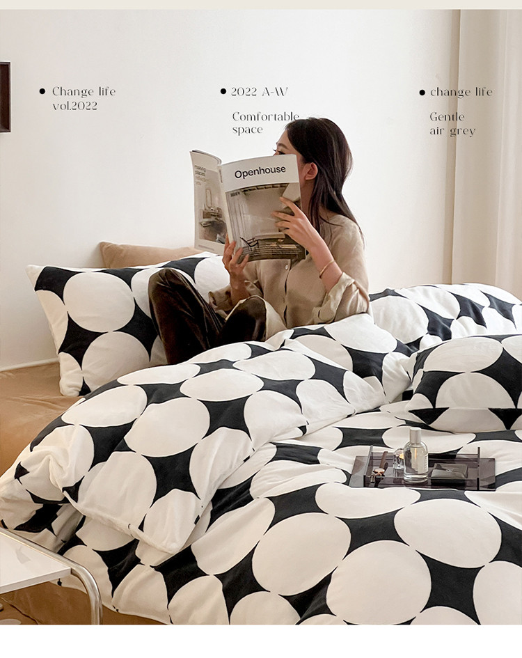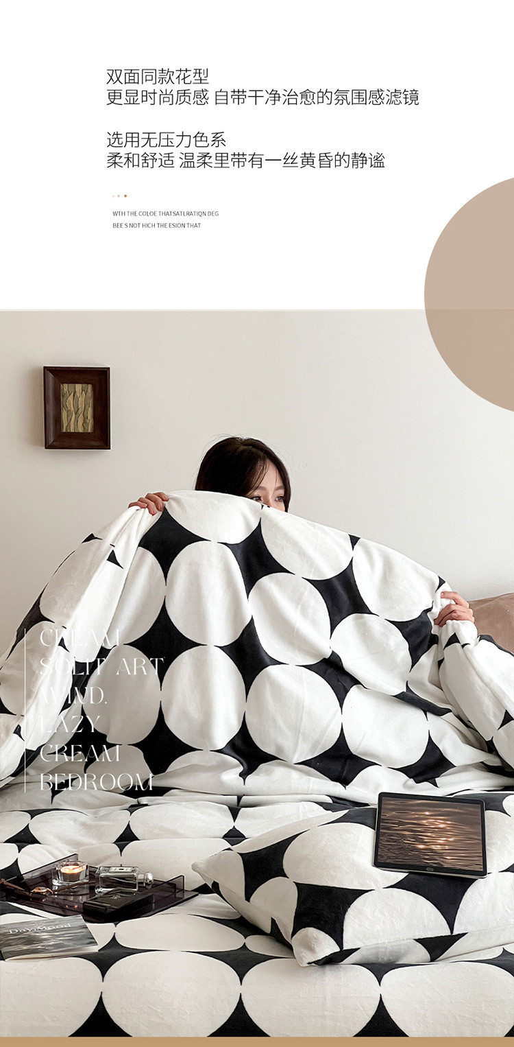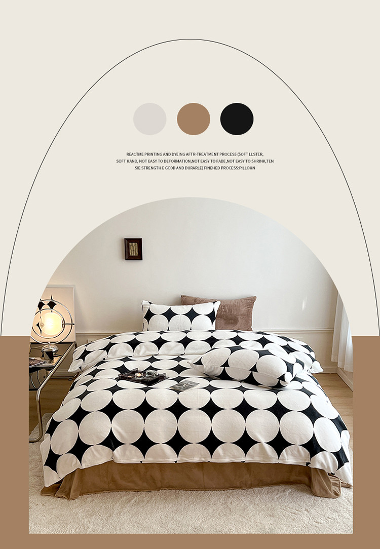 圆岛家纺 新款230克高克重牛奶绒保暖四件套 黑白菱星
