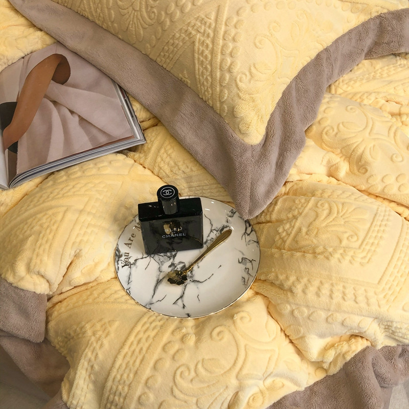 商品名称:馨蕊 2022新款秋冬轻奢煦暖绒四件套-丽莎 丽莎-柠檬黄