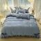 金米诺 新款韩版花边水洗棉泡泡纱四件套公主条四件套 褶皱-浅蓝,褶皱-浅蓝