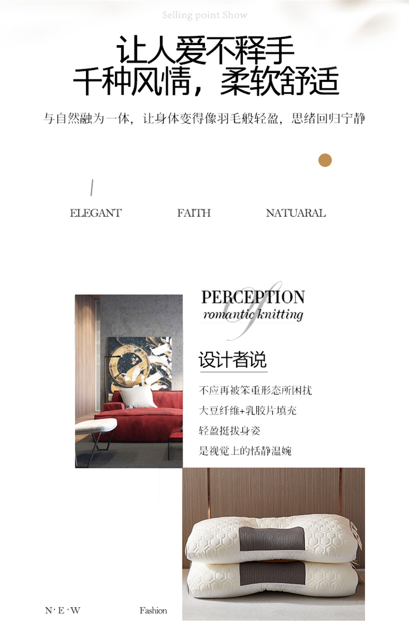 当前位置: 91家纺网 > 商品网购 > 枕头/枕芯/保健枕/颈椎枕 > 普通枕芯 > 乐可 2022新款大豆乳胶护颈3D枕 48*74cm 灰