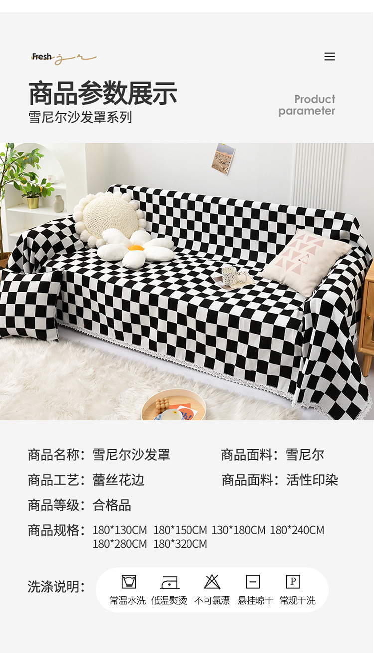 商品名称:总启博雪尼尔四季通用沙发罩雪尼尔沙发盖布沙发套沙发垫-金典花边款