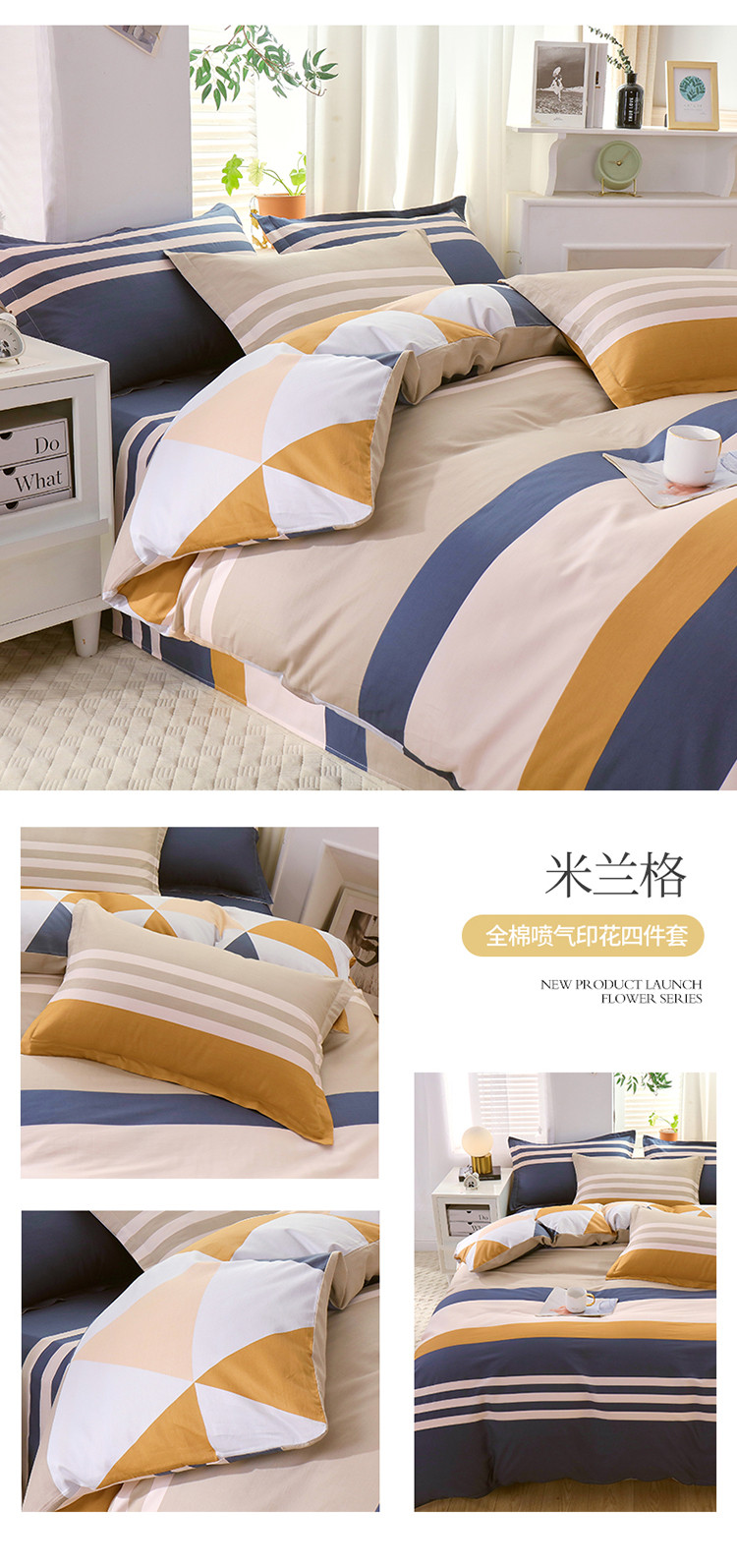 (总)拾物记 2023新款全棉喷气花卉条纹格子系列四件套