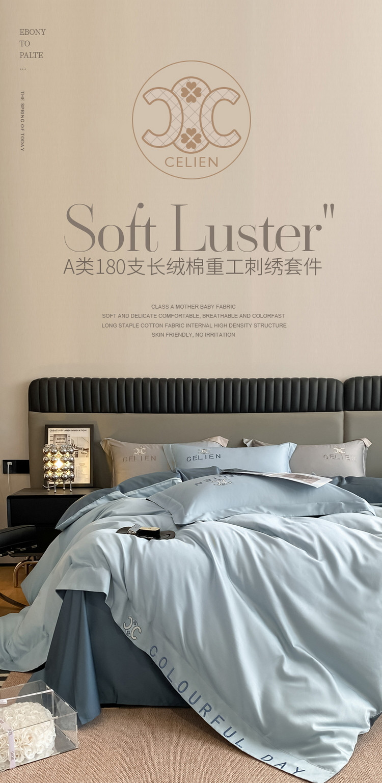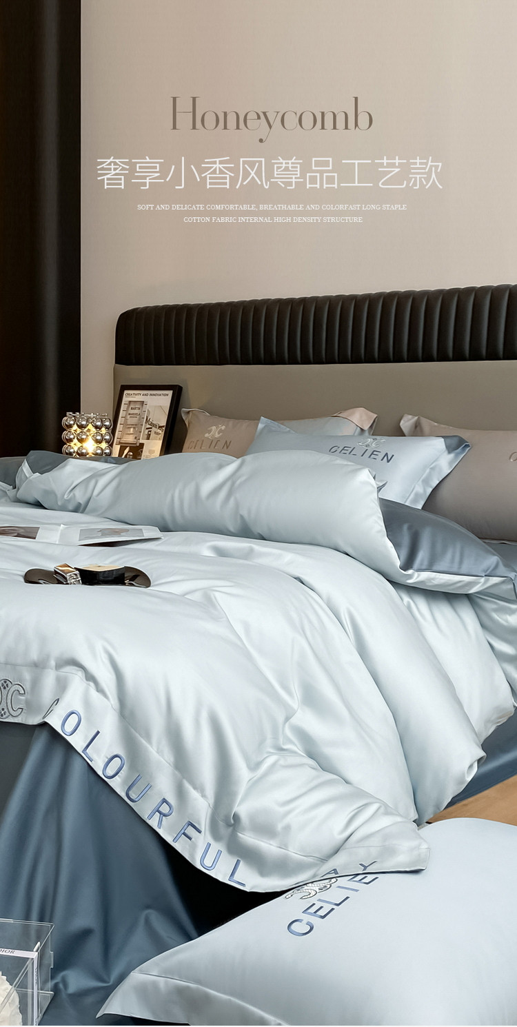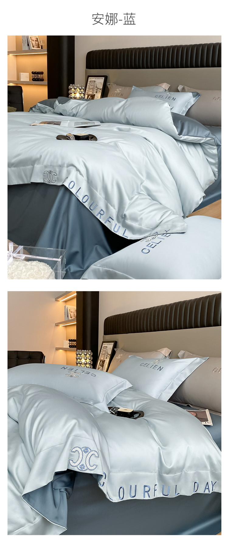 618家纺 2023新款100支长绒棉四件套-安娜系列 安娜-蓝
