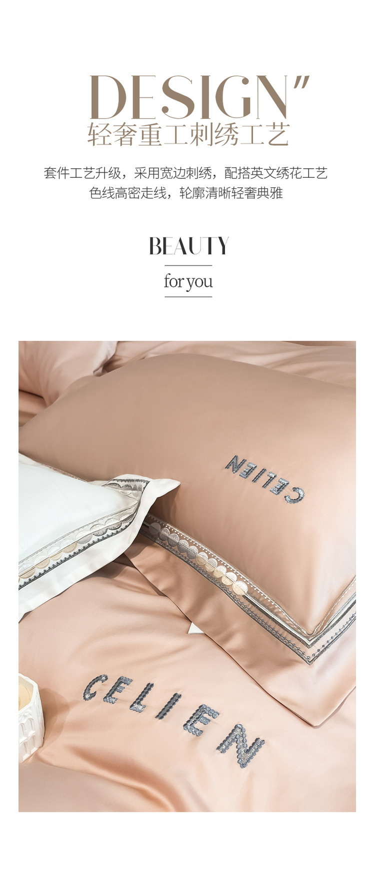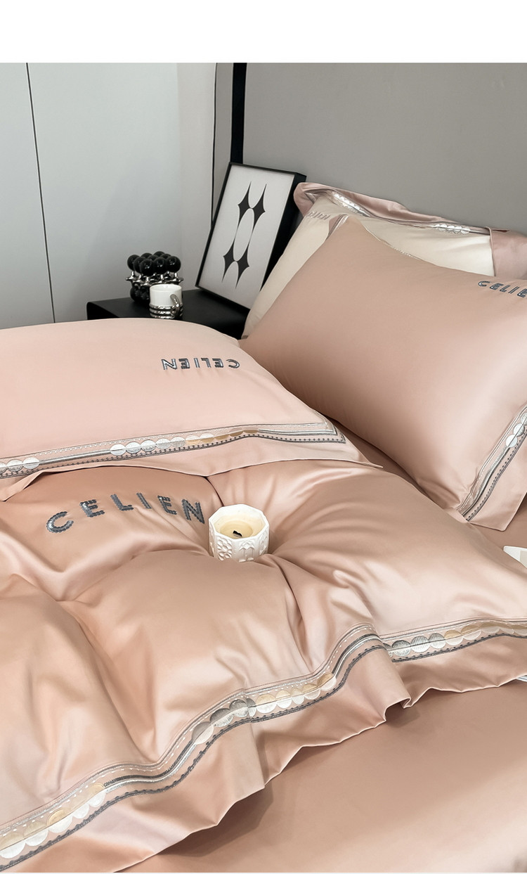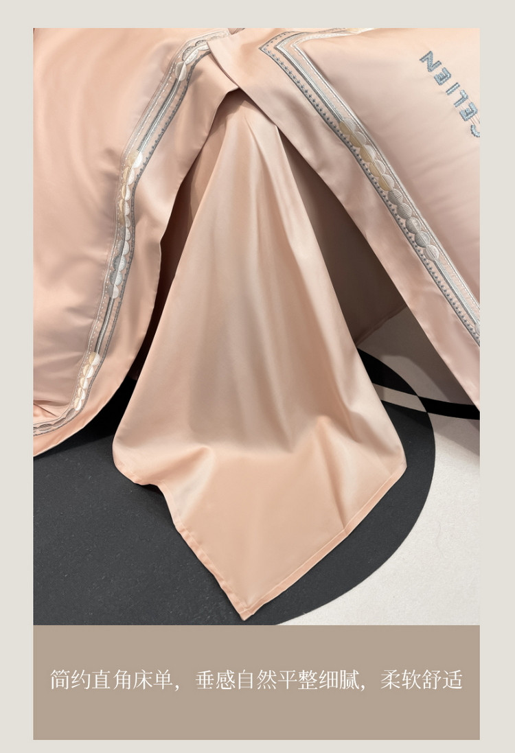 618家纺 2023新款100支长绒棉全棉纯棉四件套-赛纳系列 赛纳-粉
