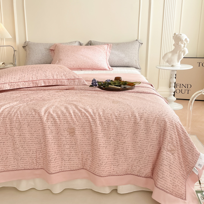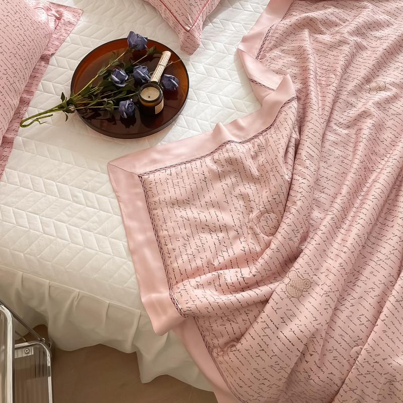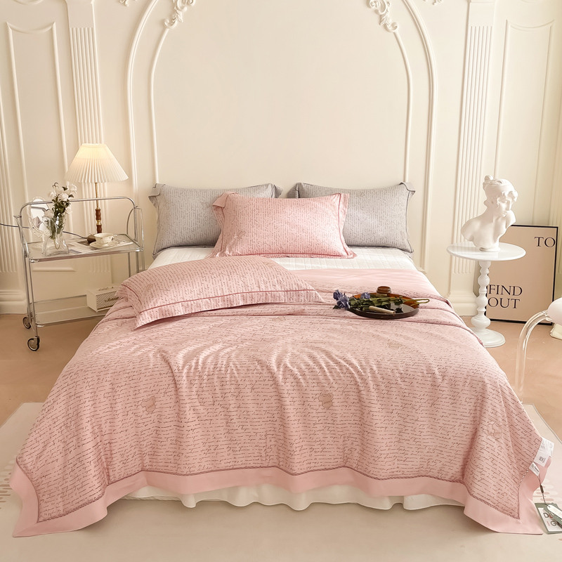 匠心 2023新款莫代尔法式镂空夏被三件套 简画-粉