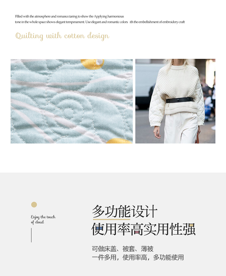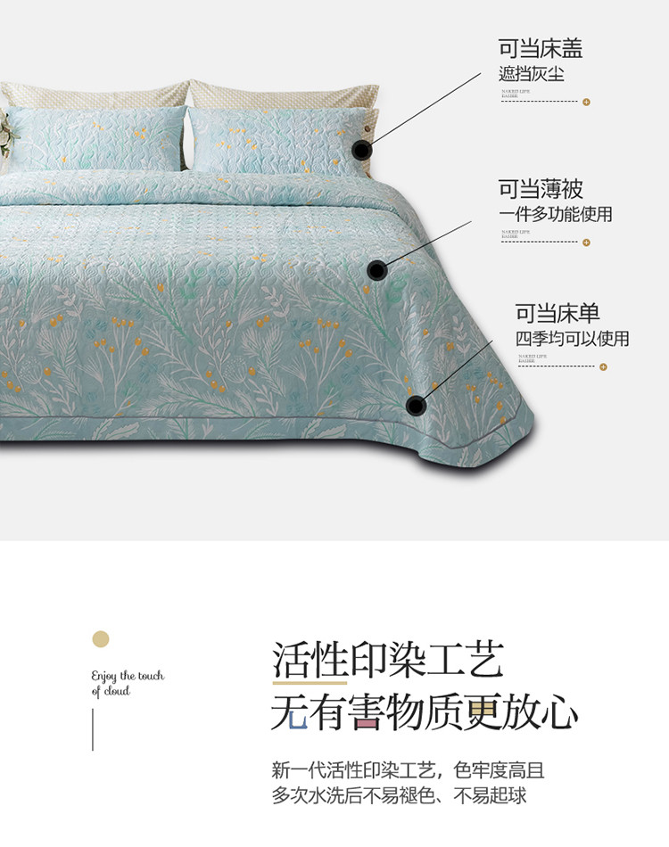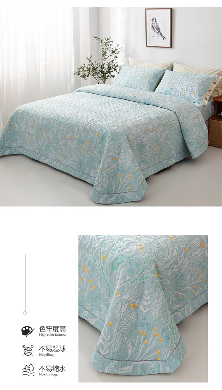 商品名称:优乐家纺 2023新款全棉印花绗绣单床盖 嫣然