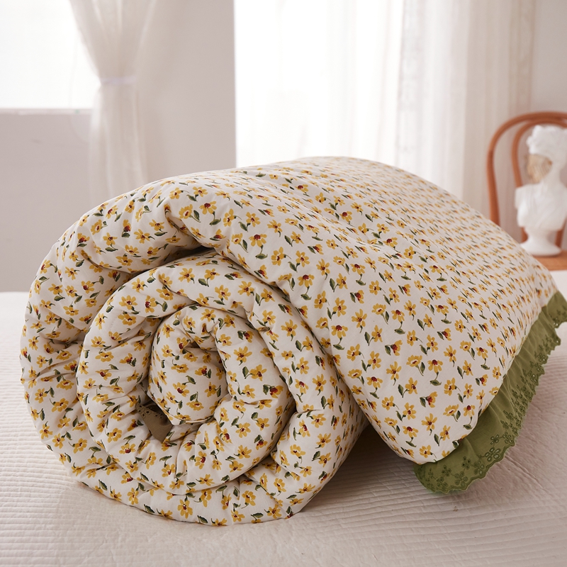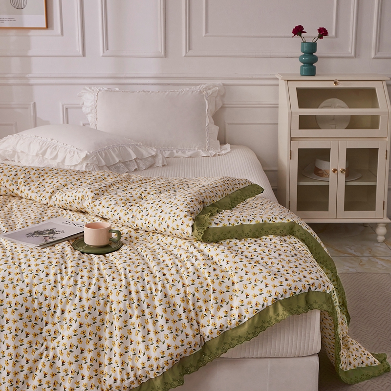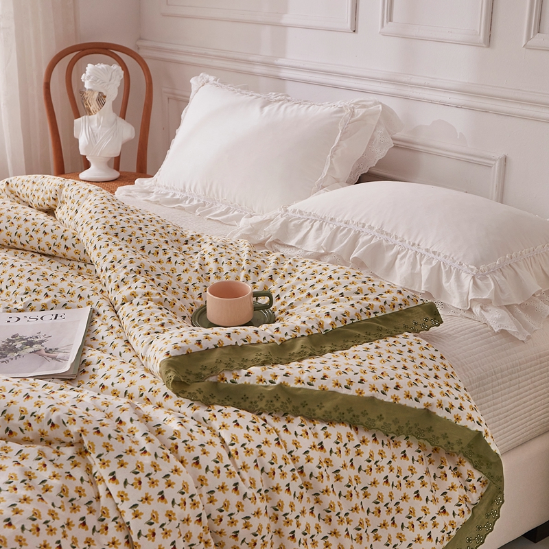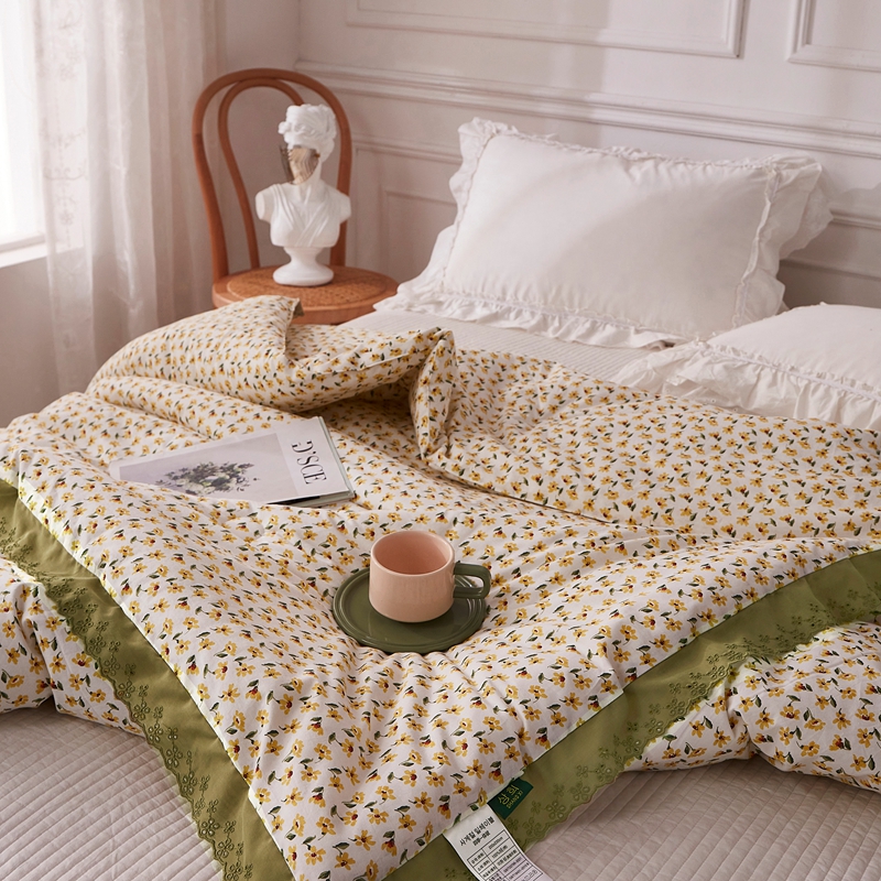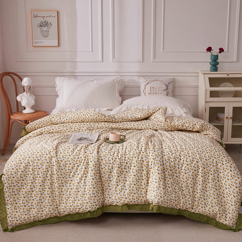 上喜 热卖全棉水洗棉印花花边一体被 花叶朵朵