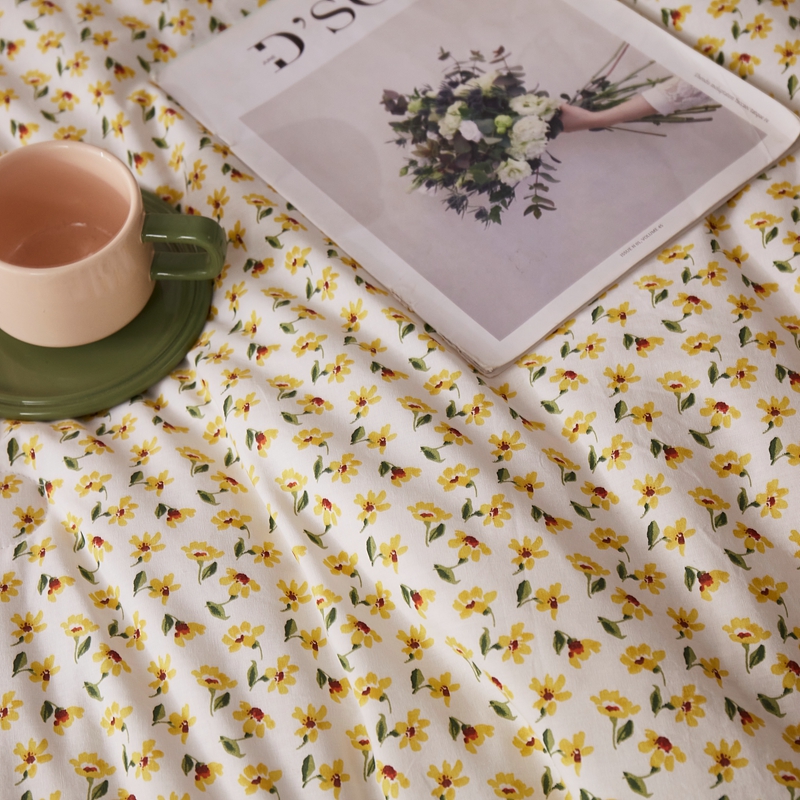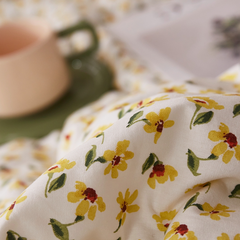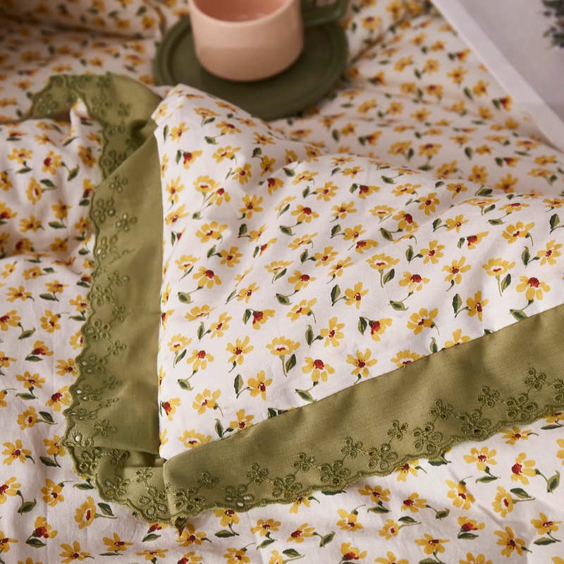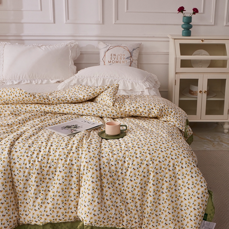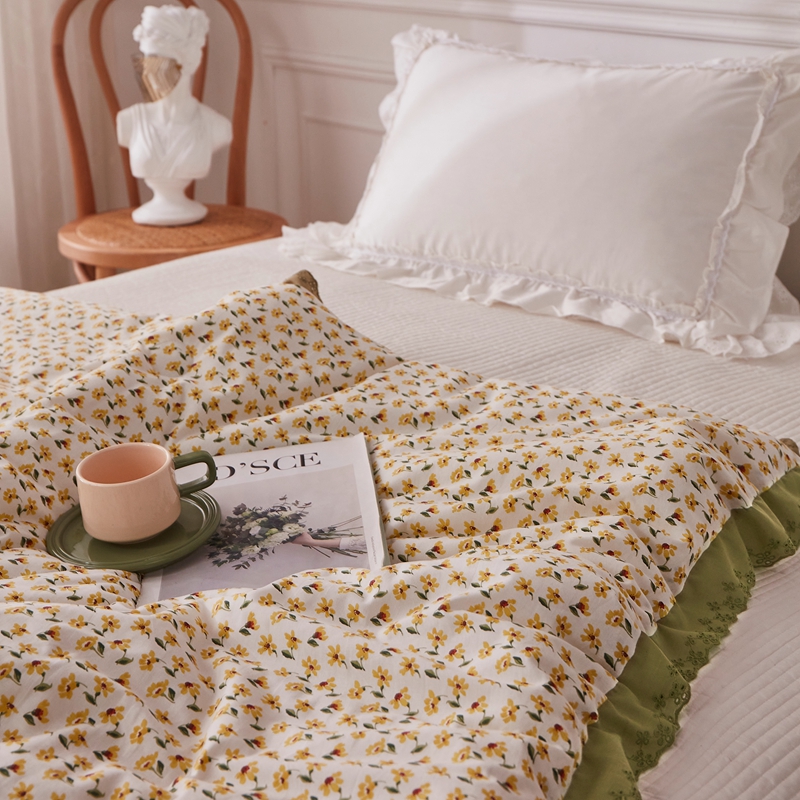 上喜 热卖全棉水洗棉印花花边一体被 花叶朵朵