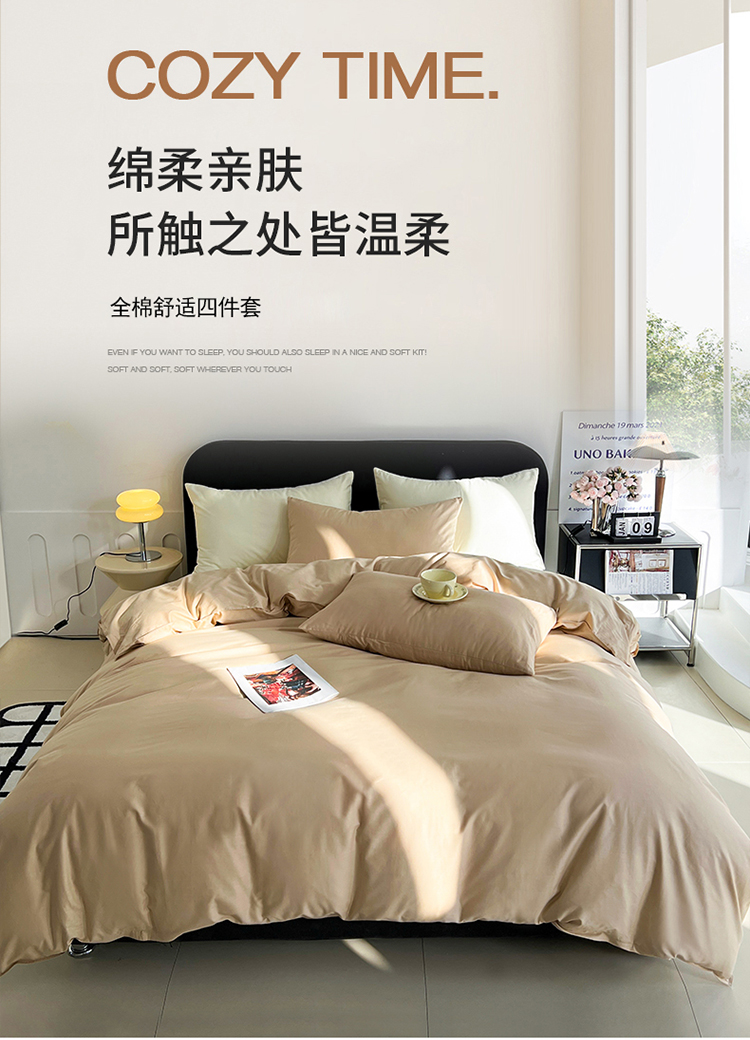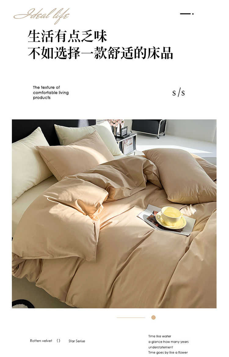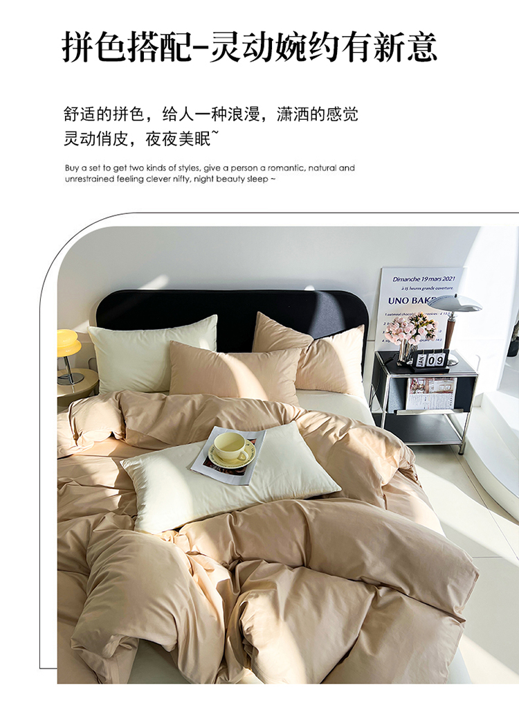 当前位置: 91家纺网 > 商品网购 > 床品套件 > 四件套 > 全棉普通四件套 > 恩和 2024新款全棉13374全棉ins纯色拼色四件套 奶茶奶盖