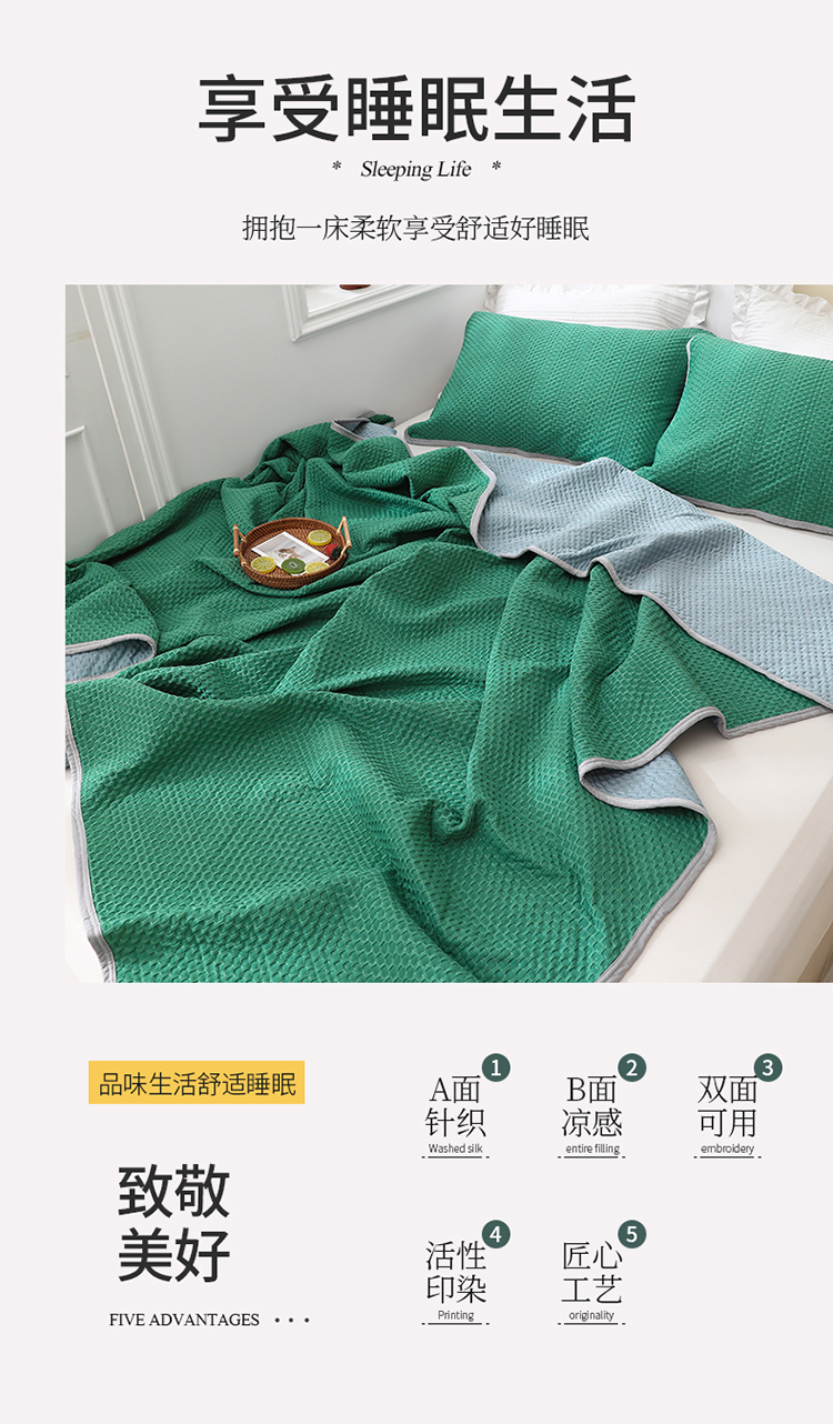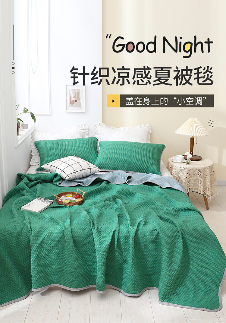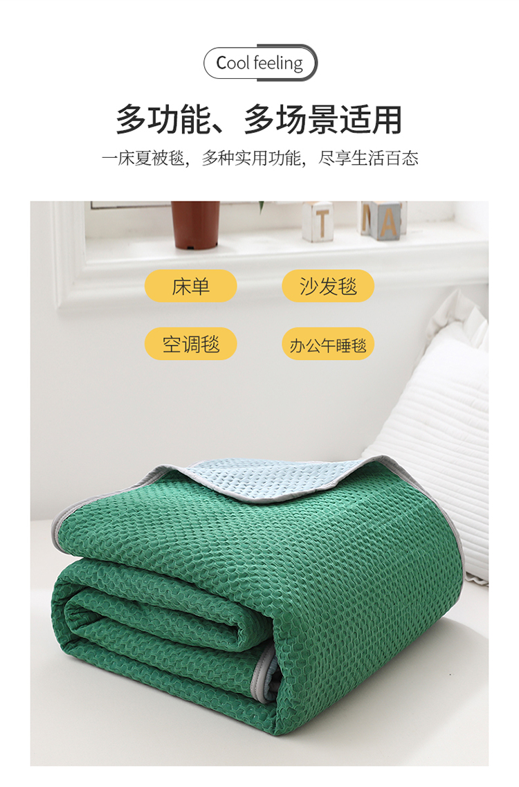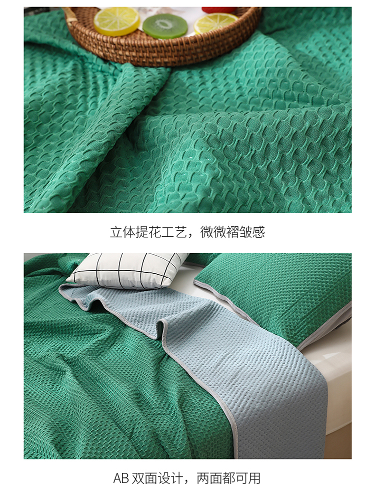 商品名称:琪琪阁2023新款华夫格针织提花亲肤舒适多功能凉感夏被 牛油果绿