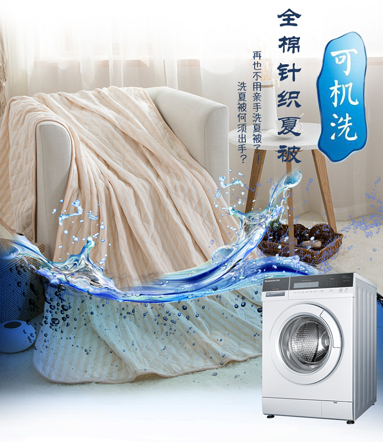 商品名称:琪琪阁2023新款宽条纹针织棉夏被盖毯 浅咖条纹
