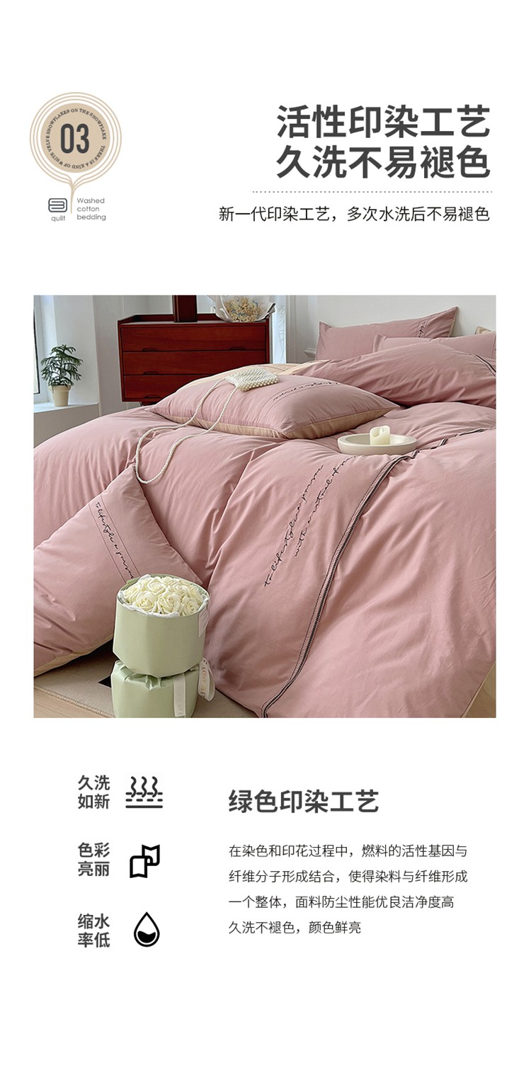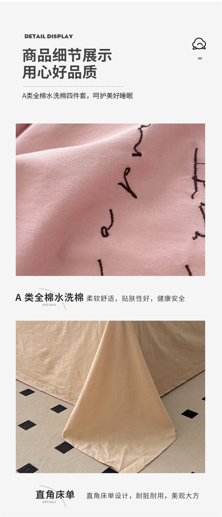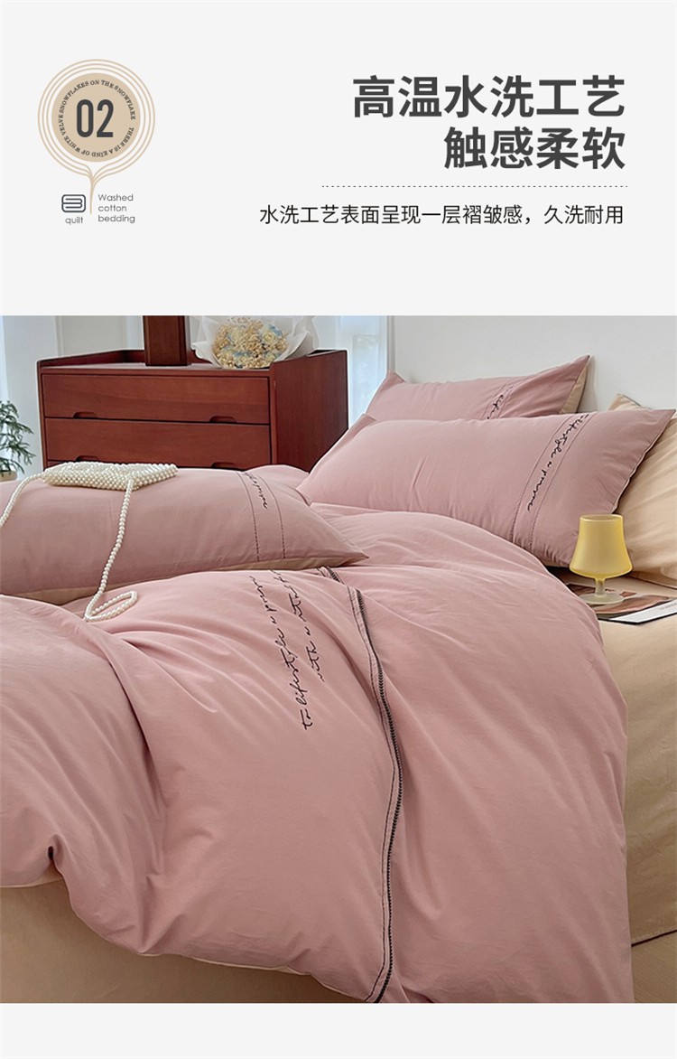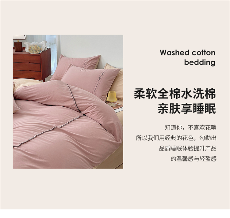 (总)拼社家纺 2025新款母婴及全棉水洗棉刺绣四件套纯棉床上用品,艾玛绿+卡其,繁星蓝+卡其,繁星蓝+玫瑰粉,红豆沙+雅灰,迷雾灰+玫瑰粉,蜜粉+雅灰,奶油白+卡其,奶油白+香橙,牛仔蓝+浅蓝,香橙+雅灰