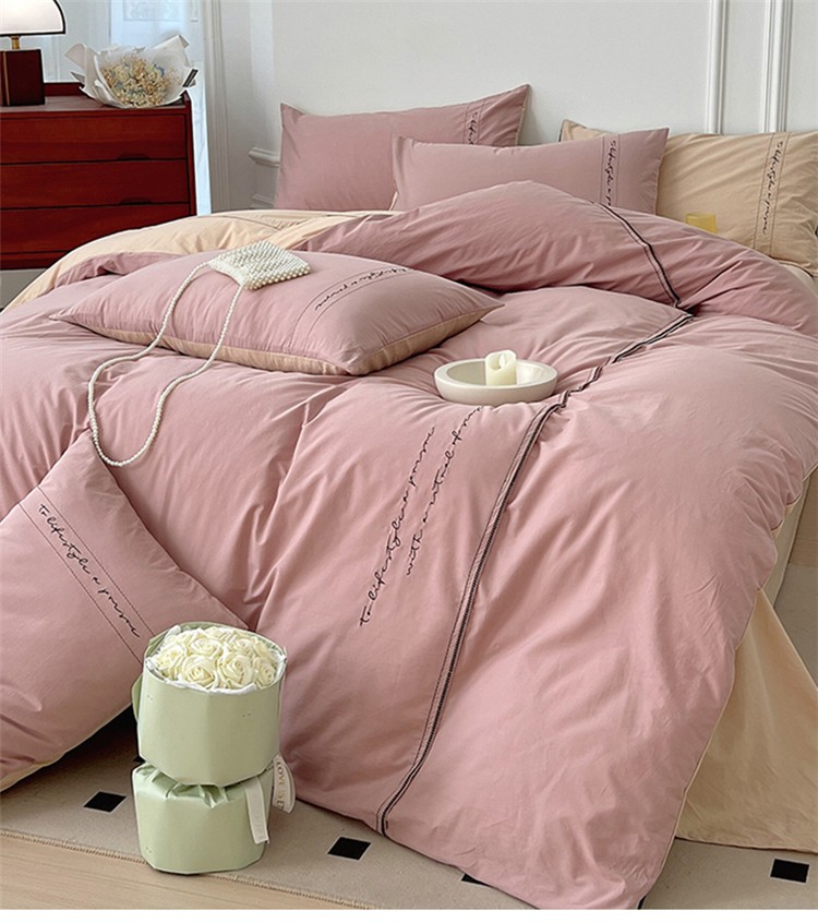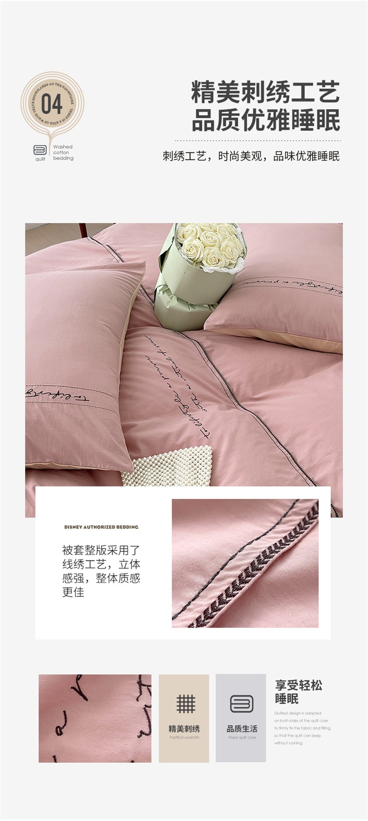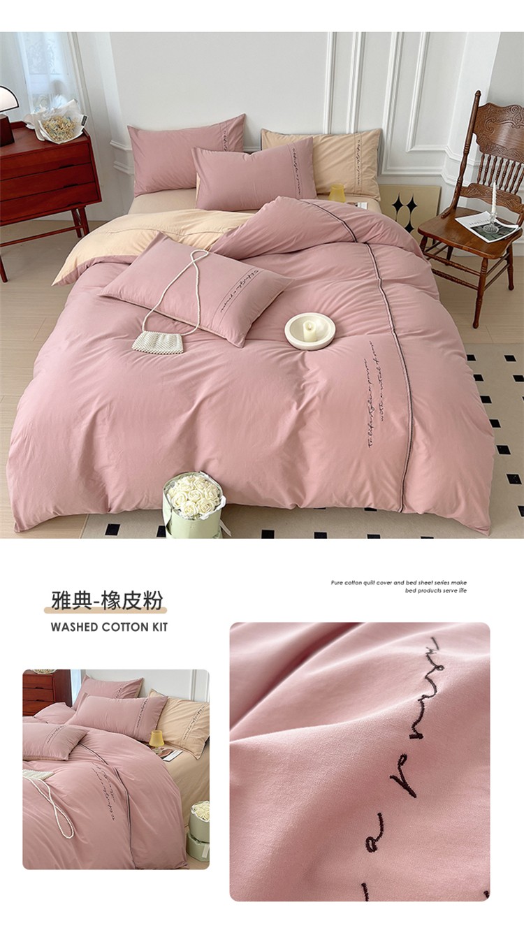 拼社 全棉水洗棉刺绣四件套纯棉床上用品 雅典-橡皮粉