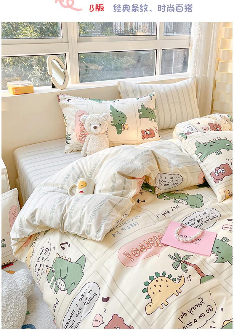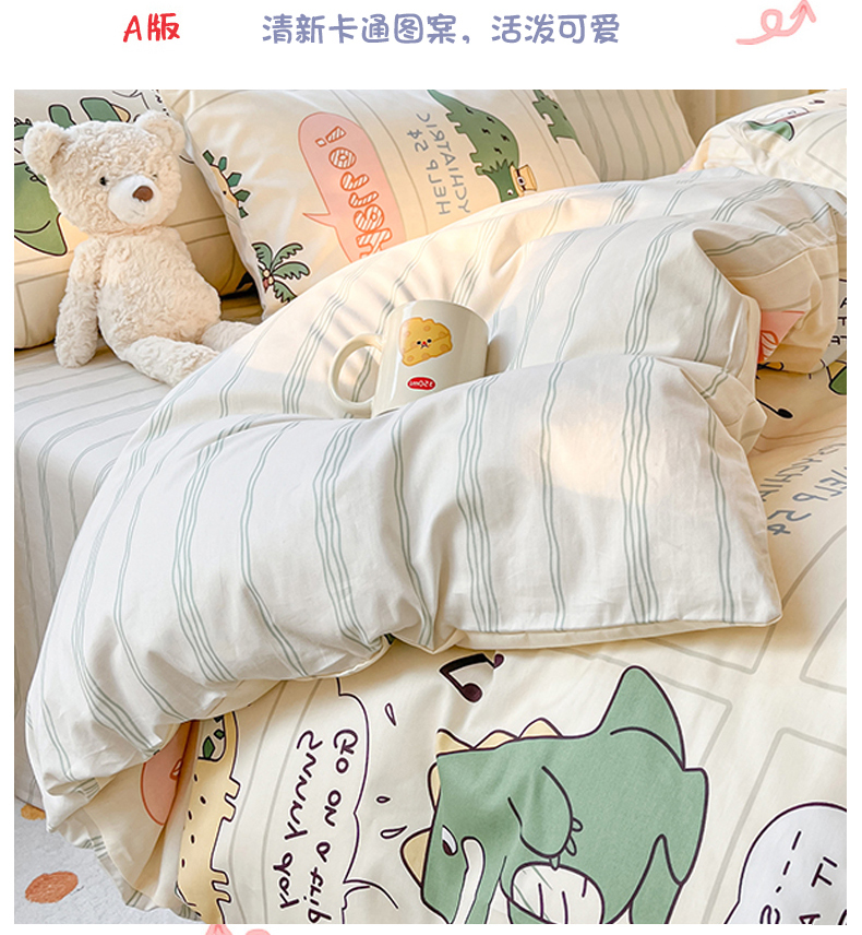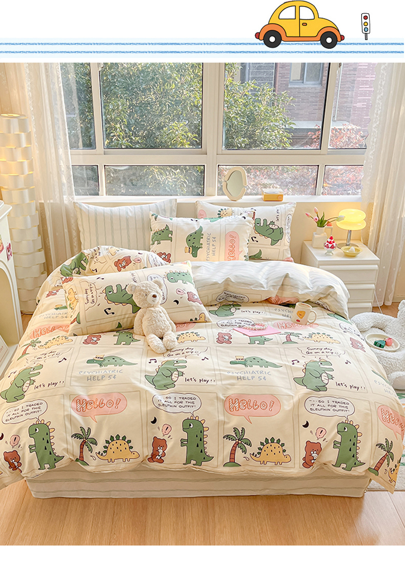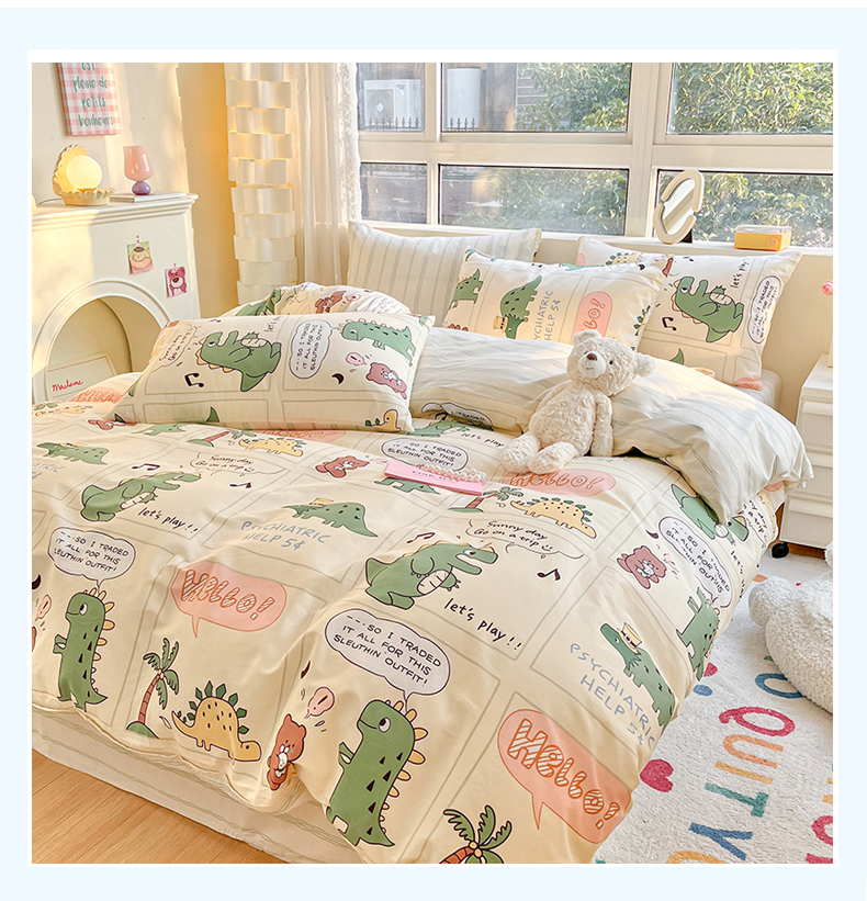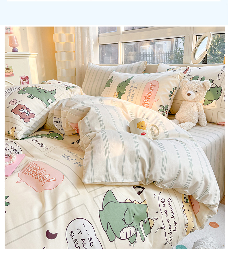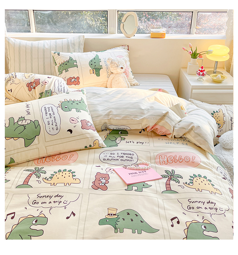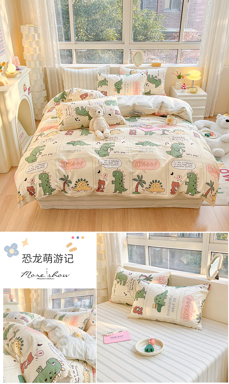 当前位置: 91家纺网 > 商品网购 > 床品套件 > 四件套 > 全棉普通四件套 > 麦伦 2023春夏新品ins小清新系列四件套 恐龙梦游记