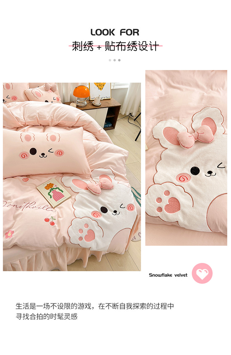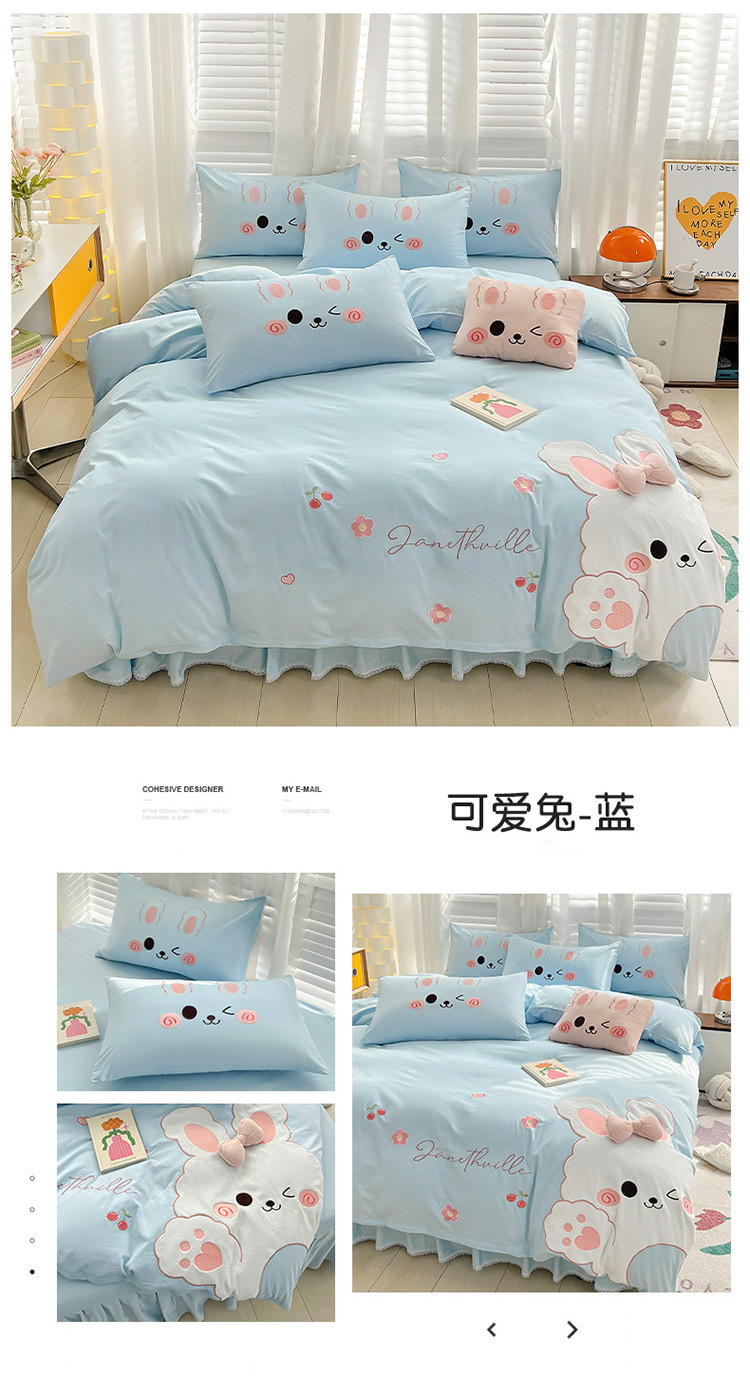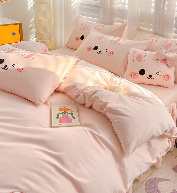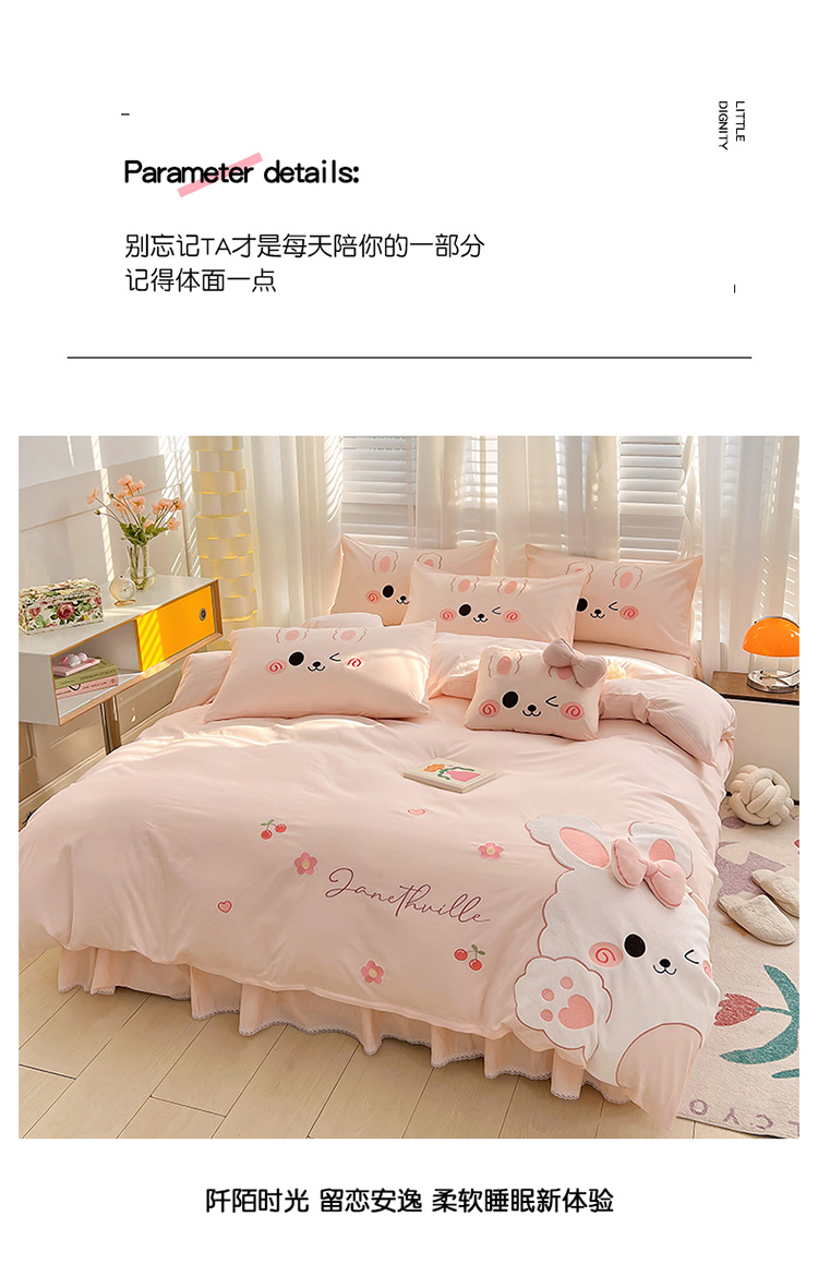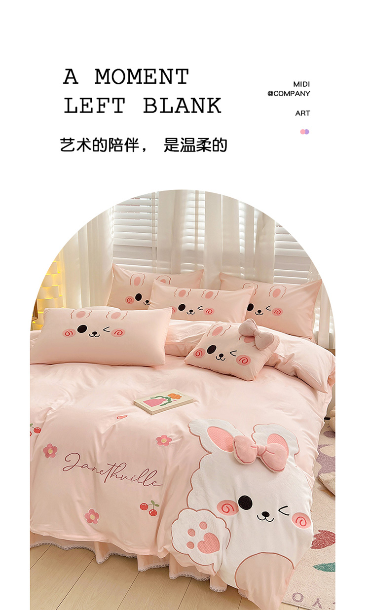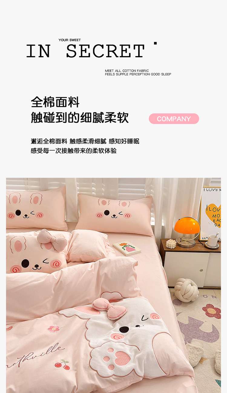 当前位置: 91家纺网 > 商品网购 > 床品套件 > 四件套 > 全棉普通四件套 > (总)亲亲公主 2025新款全棉可爱卡通贴布绣三件套四件套-可爱兔