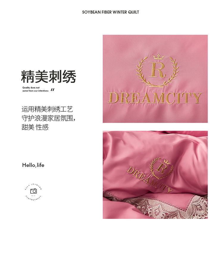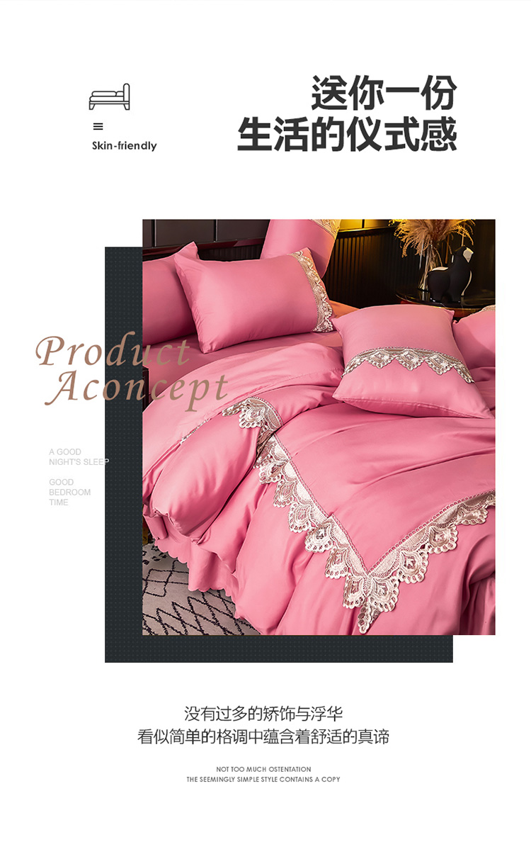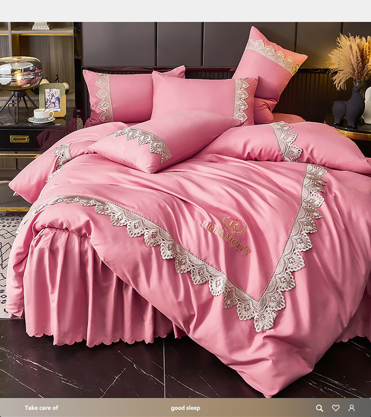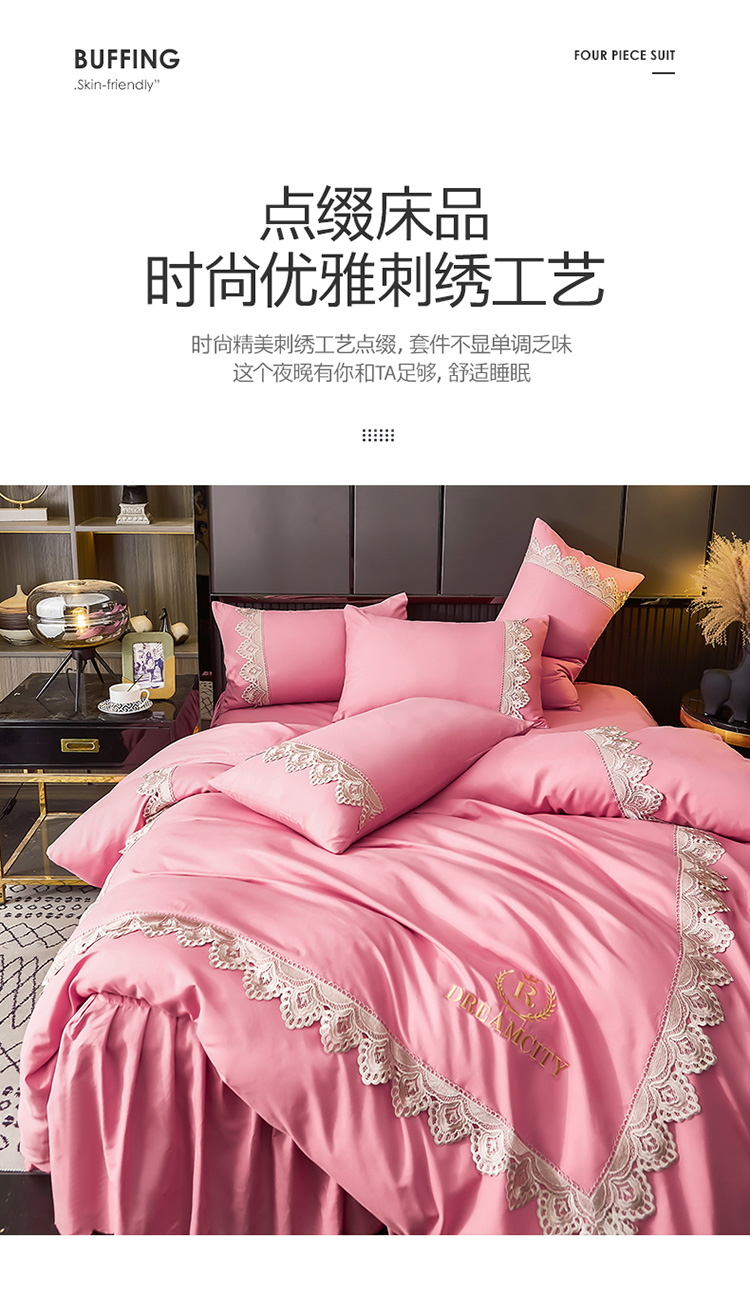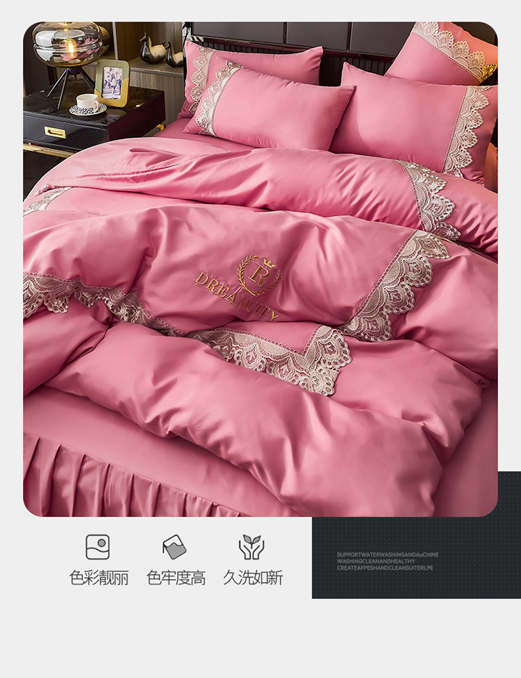 商品名称:莉莉安 2025新款花边刺绣亲肤磨毛四件套梦境系列 梦境-香妃粉