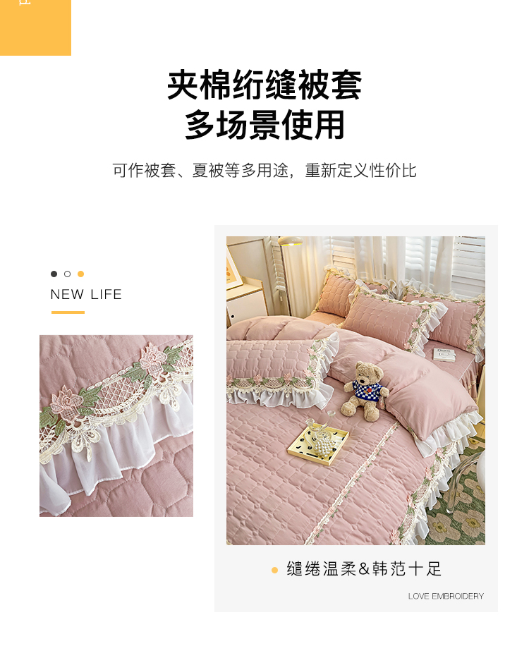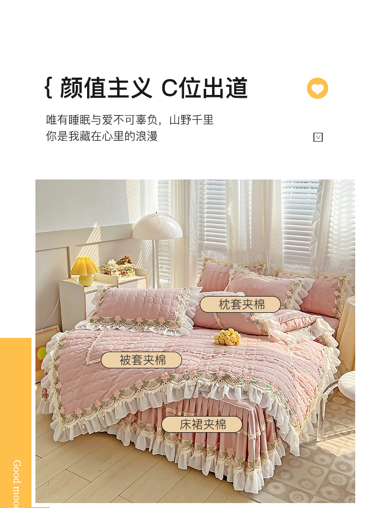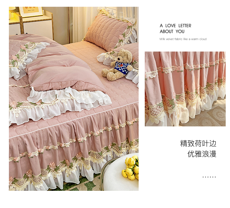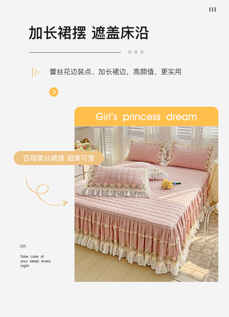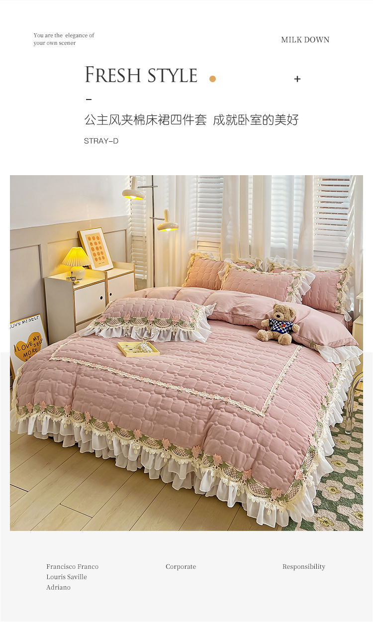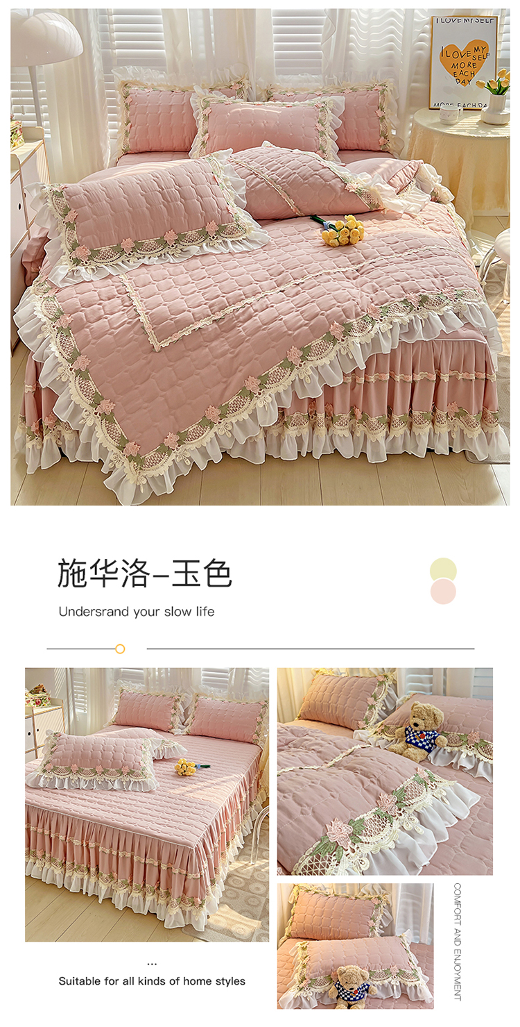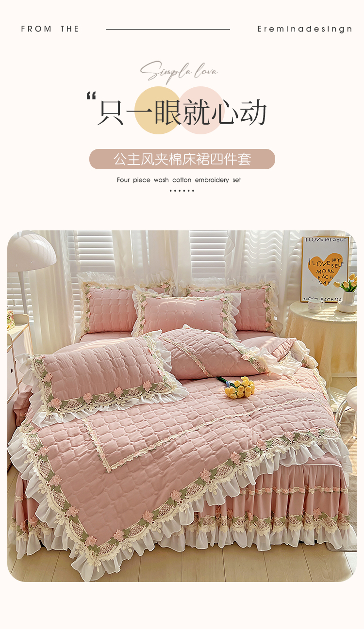 当前位置: 91家纺网 > 商品网购 > 床品套件 > 四件套 > 化纤普通四件套 > 罗艺轩 2024新款夹棉床裙施华洛系列四件套 施华洛-玉色