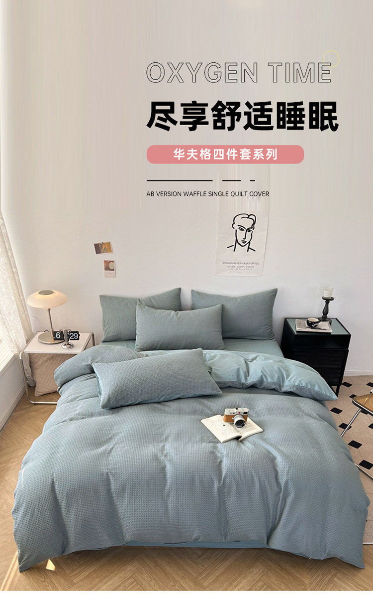 雅萱 2023新款华夫格四件套-普通款 雾蓝