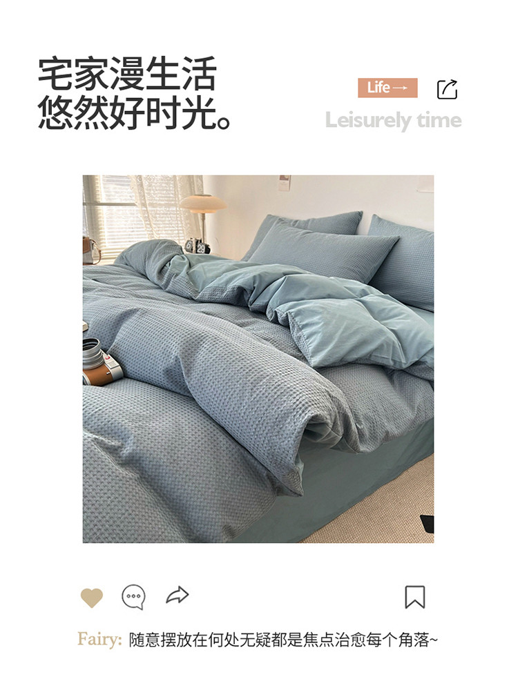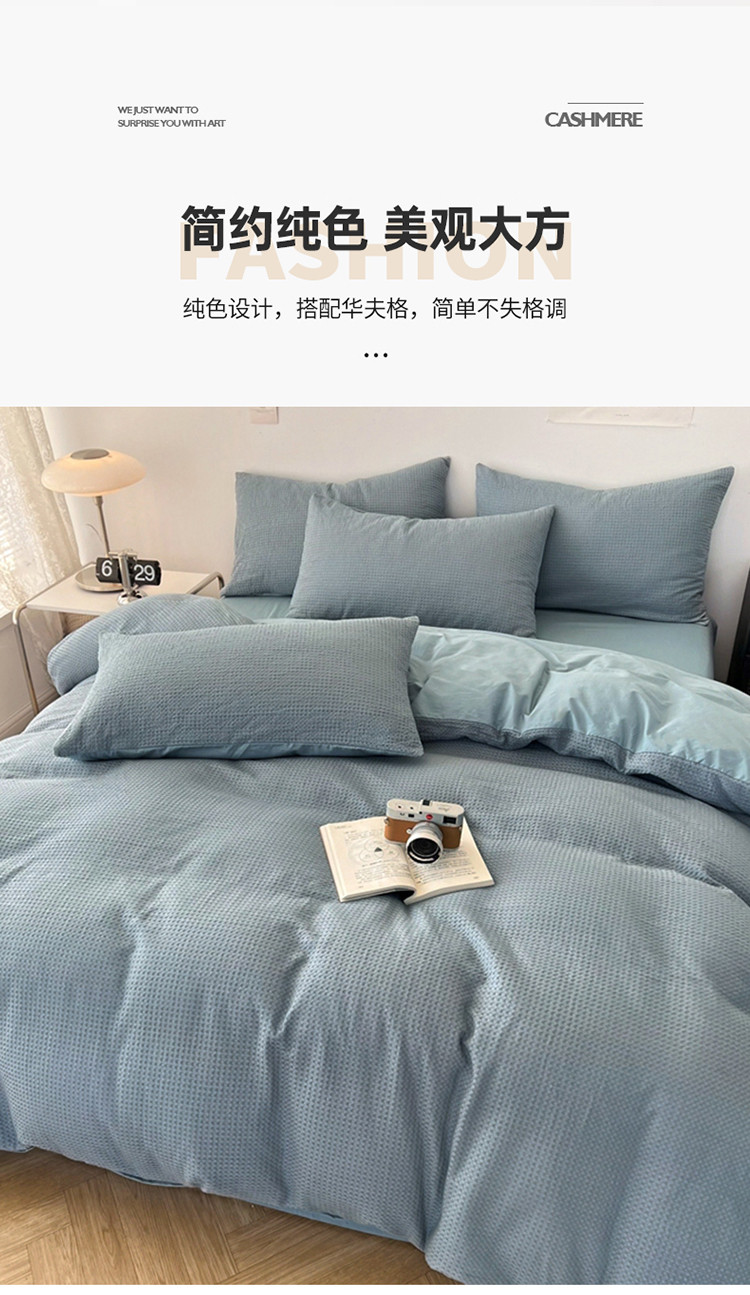 商品名称:雅萱 2023新款华夫格四件套-普通款 雾蓝