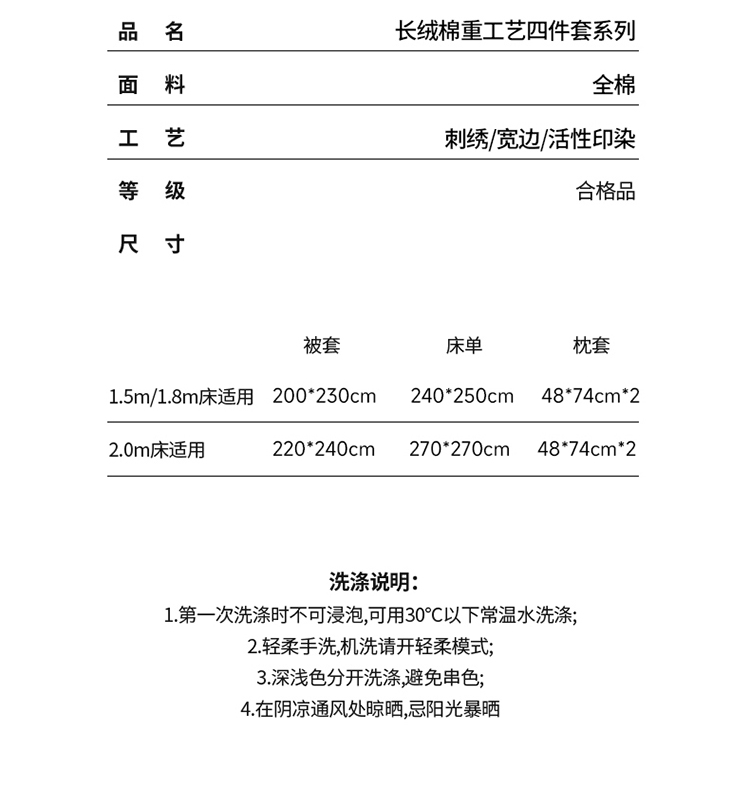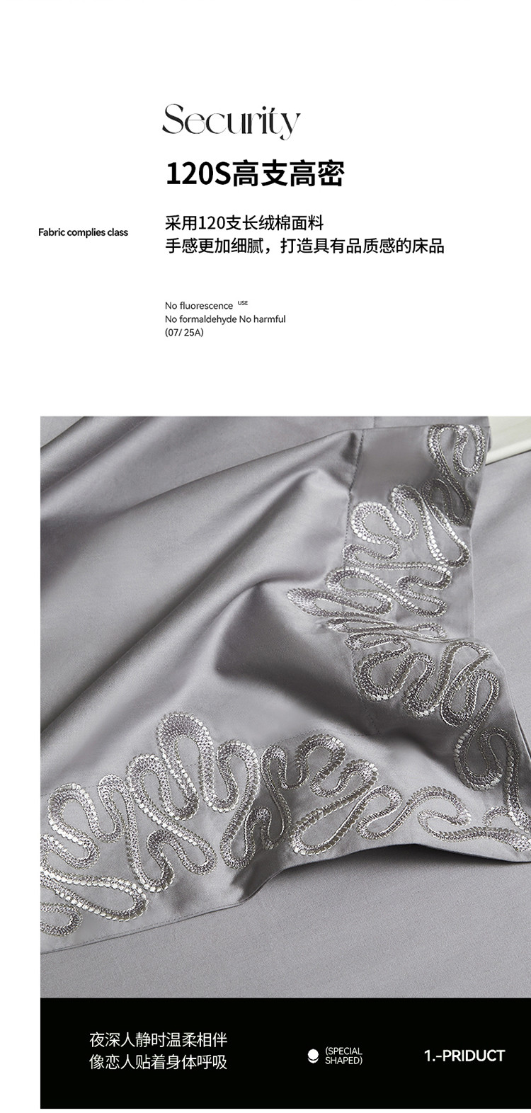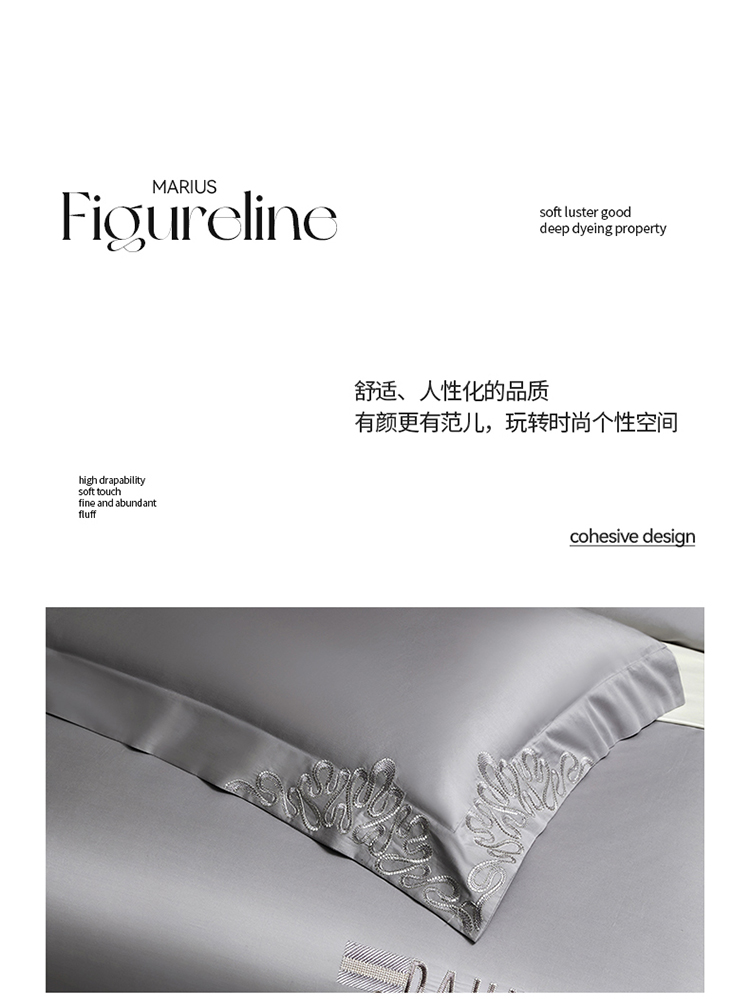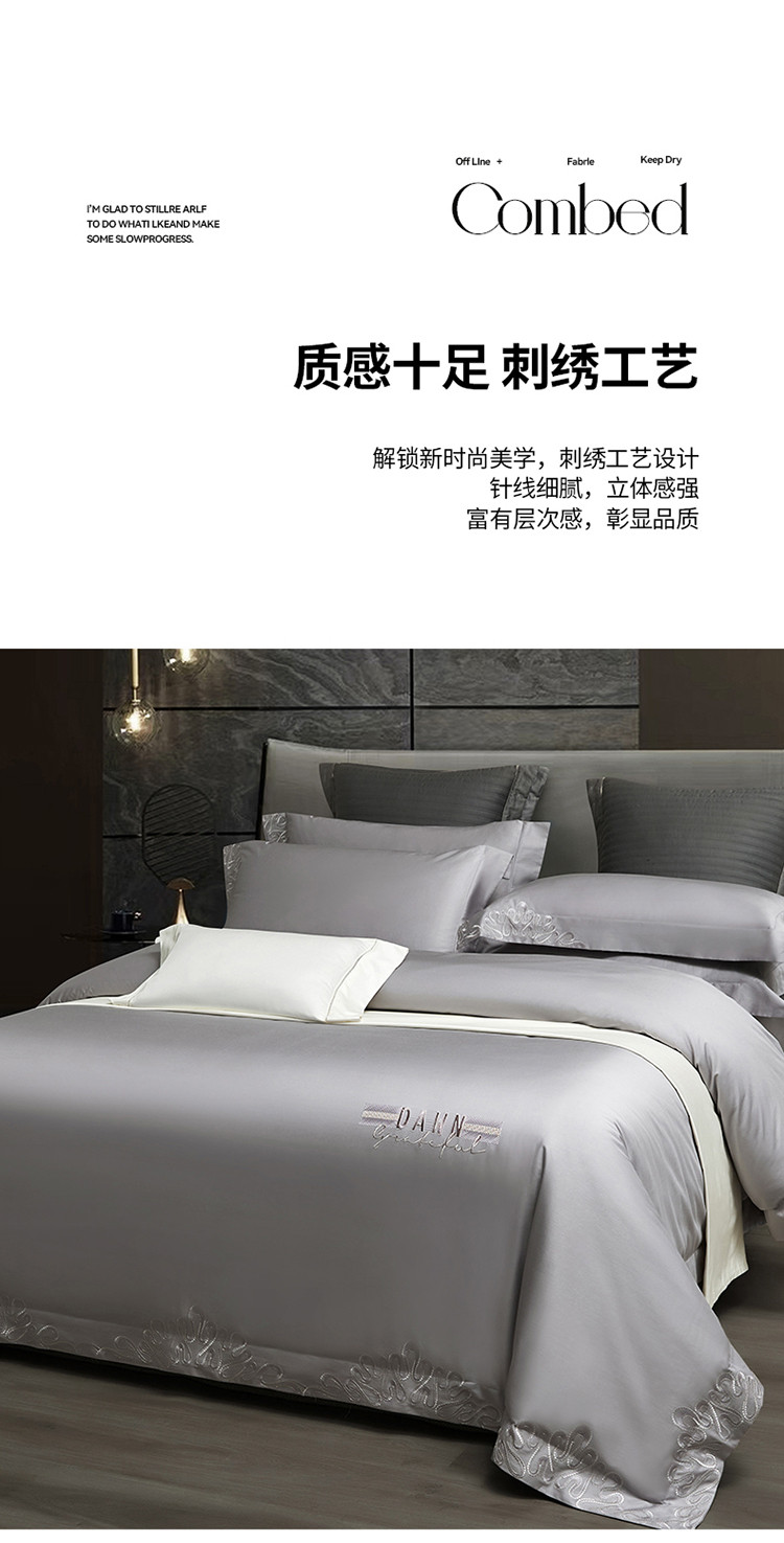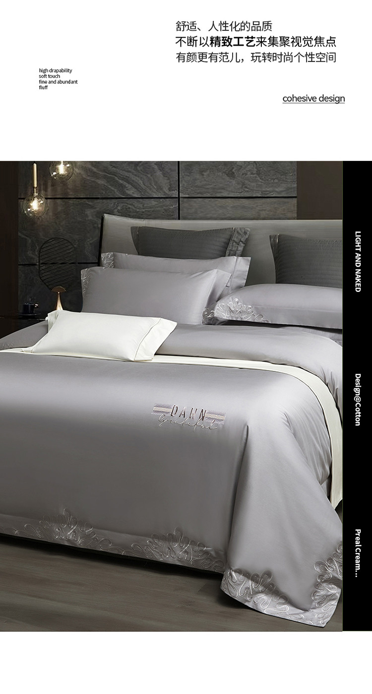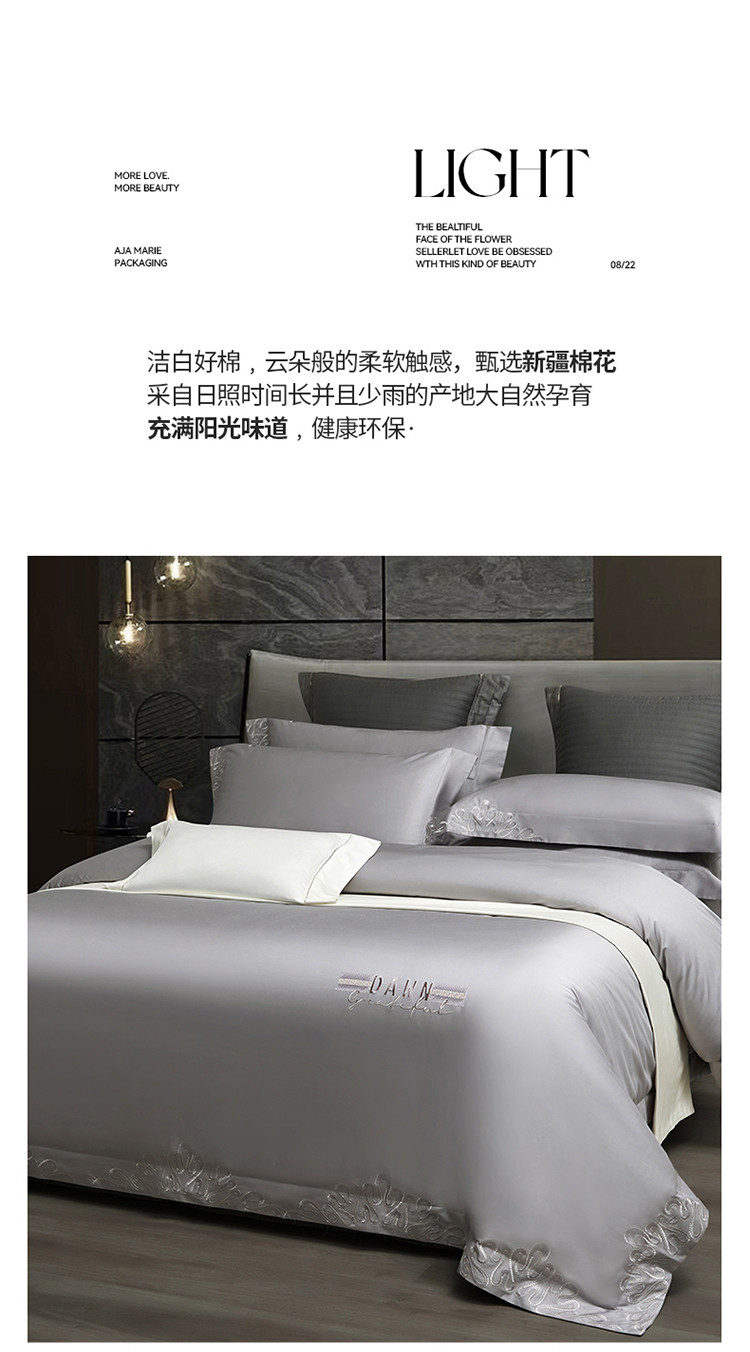 商品名称:惠居家 2023新款120支长绒棉刺绣四件套希曼系列 灰色