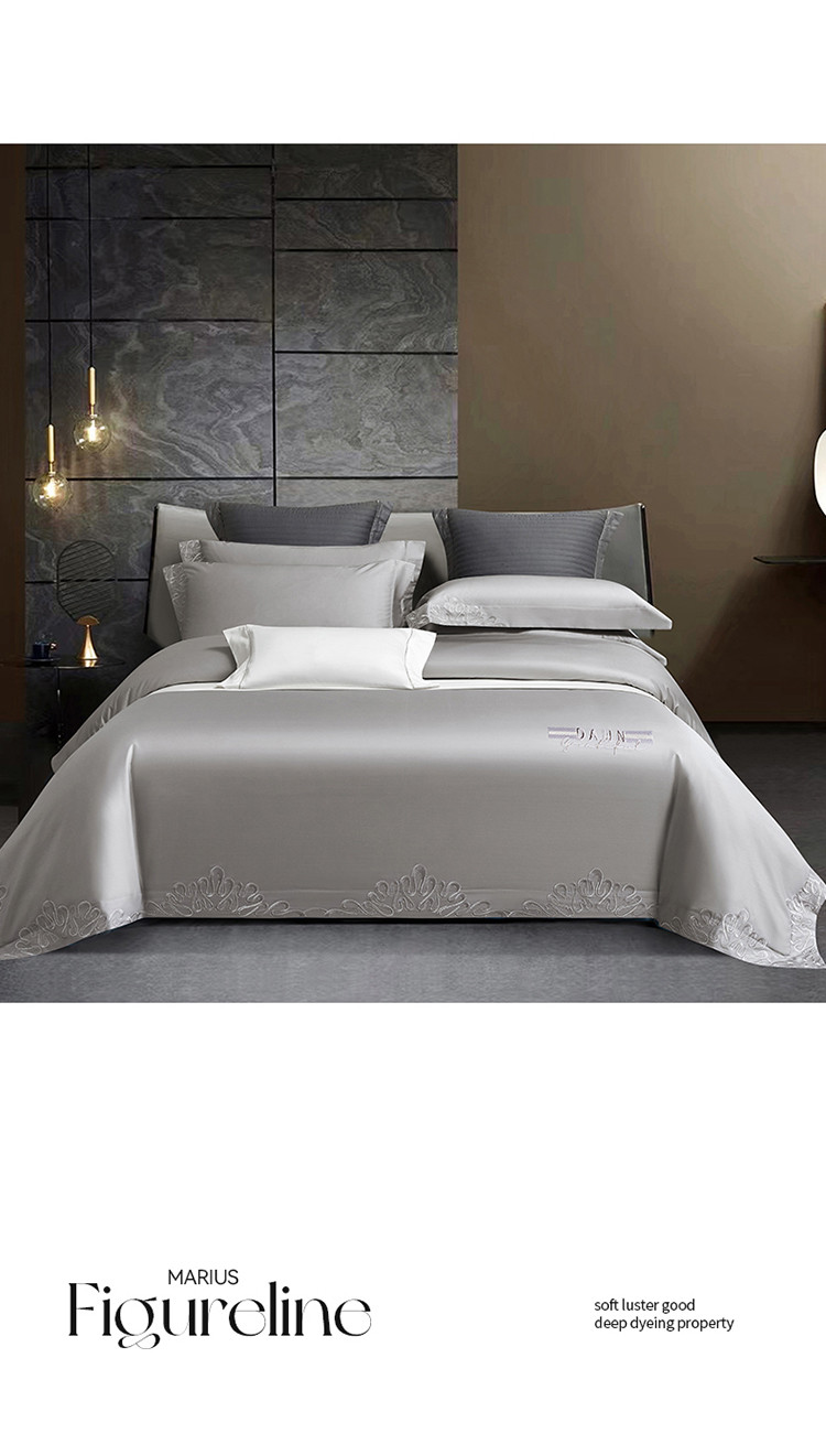 惠居家 2023新款120支长绒棉刺绣四件套希曼系列 灰色