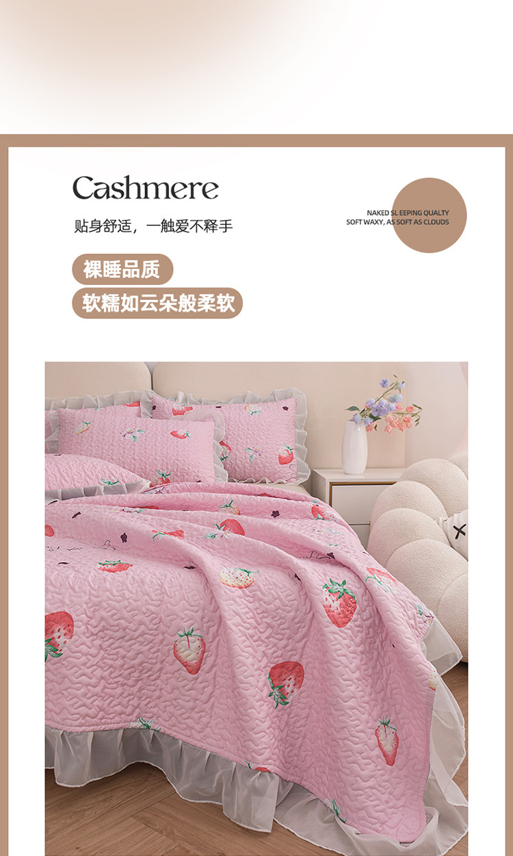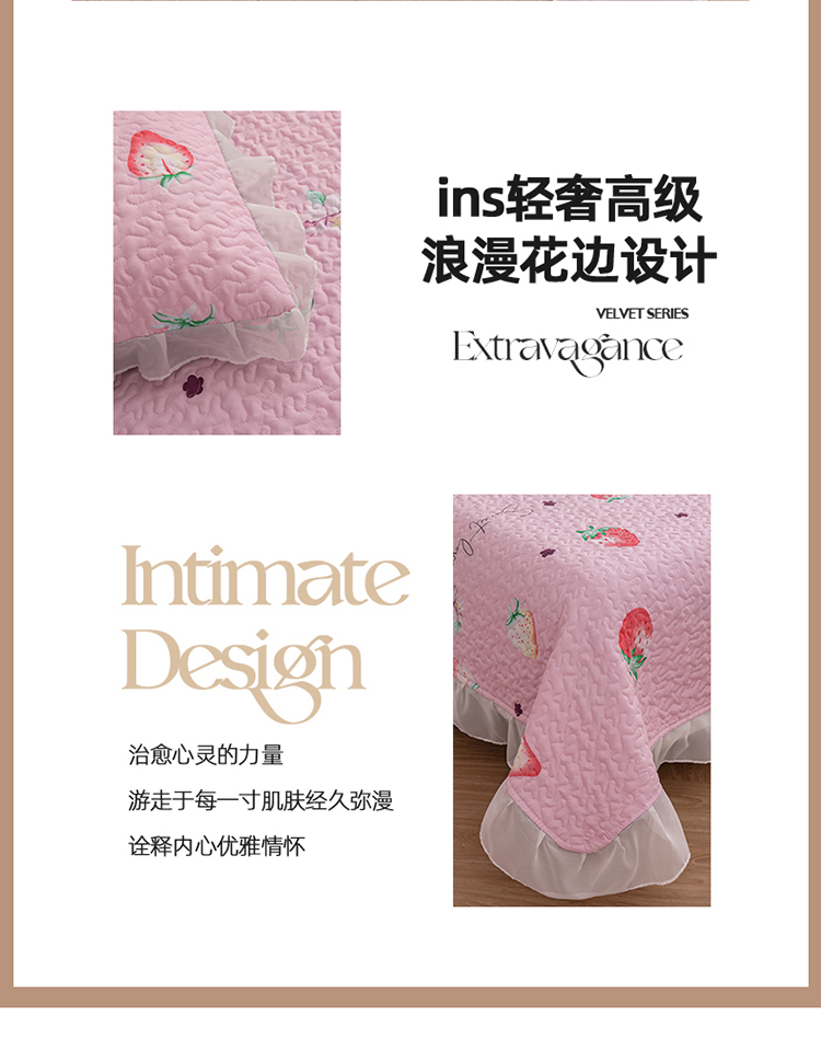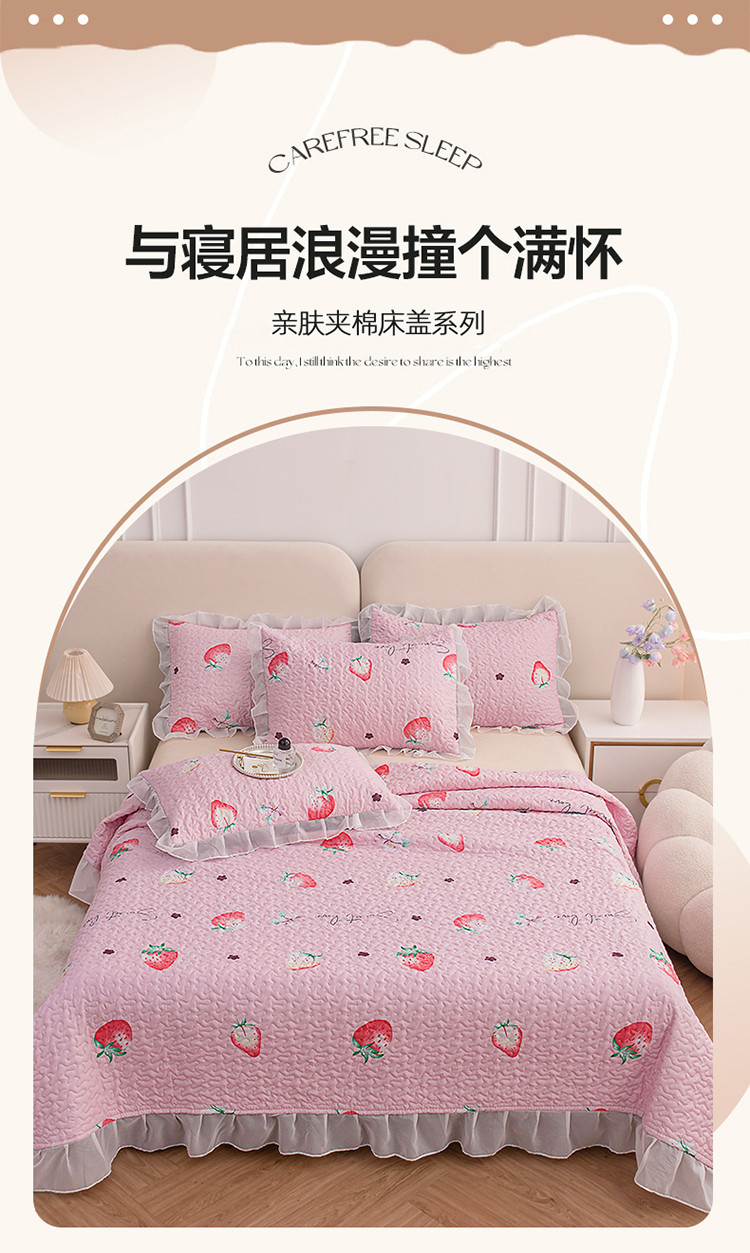 商品名称:梓依 2023新款 亲肤夹棉床盖系列 草莓-粉