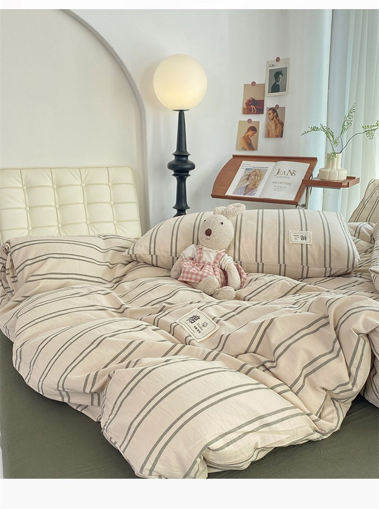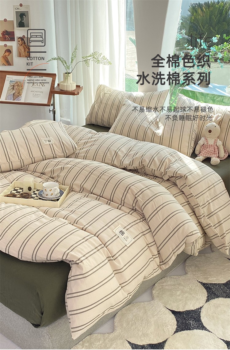 商品名称:云家2023新款全棉纯棉水洗棉色织被套单件被罩 复古绿条