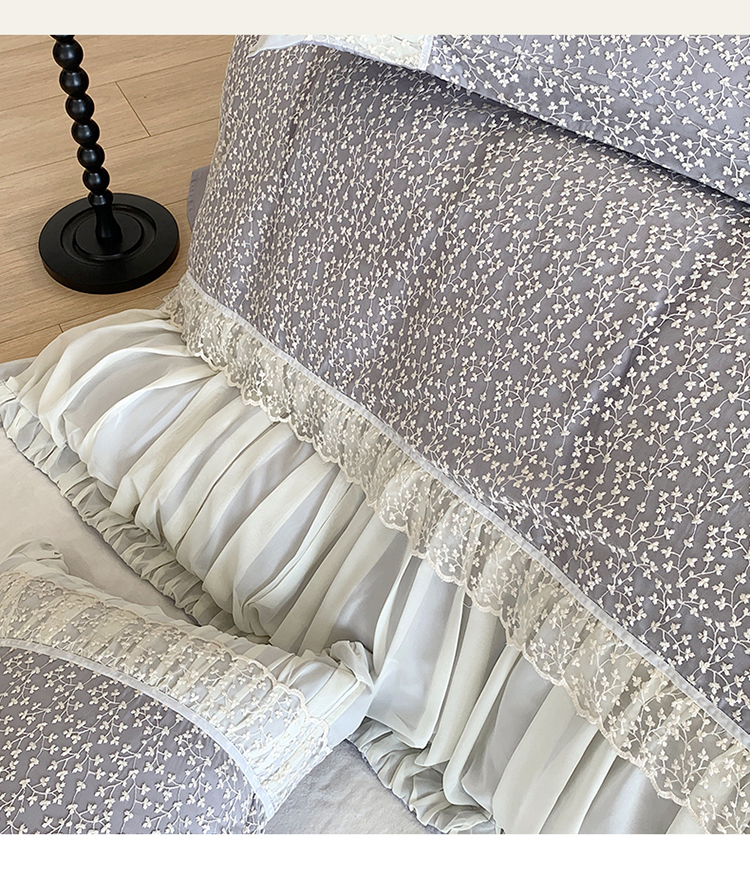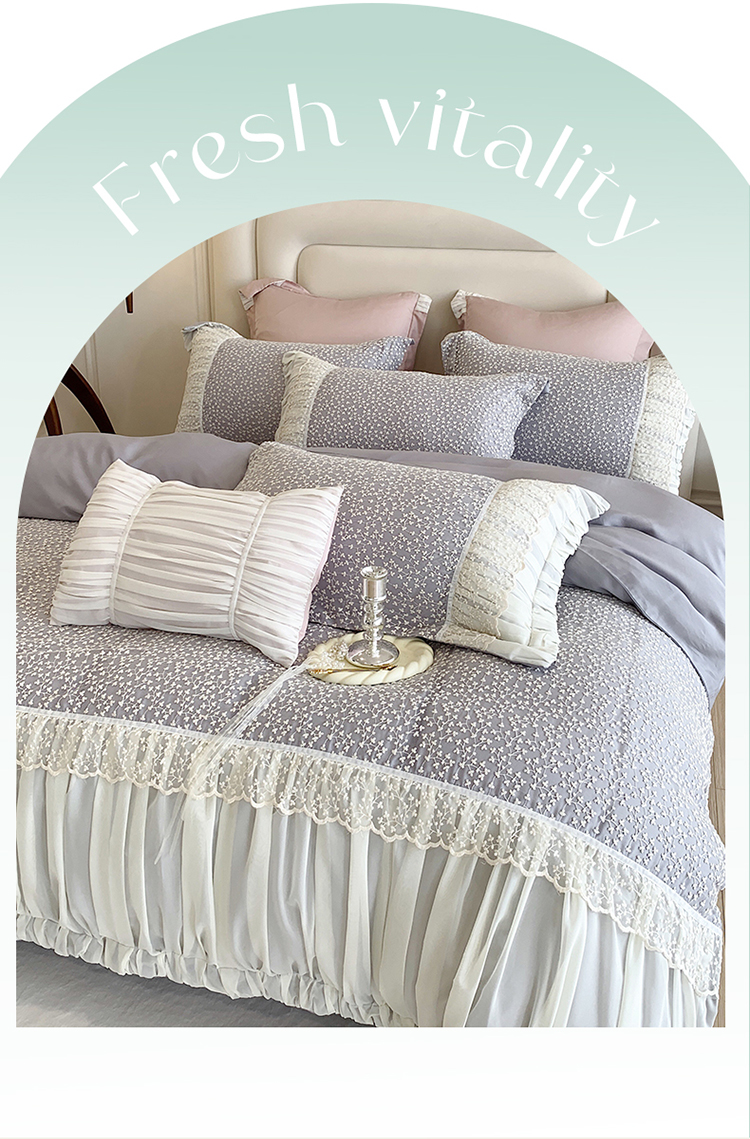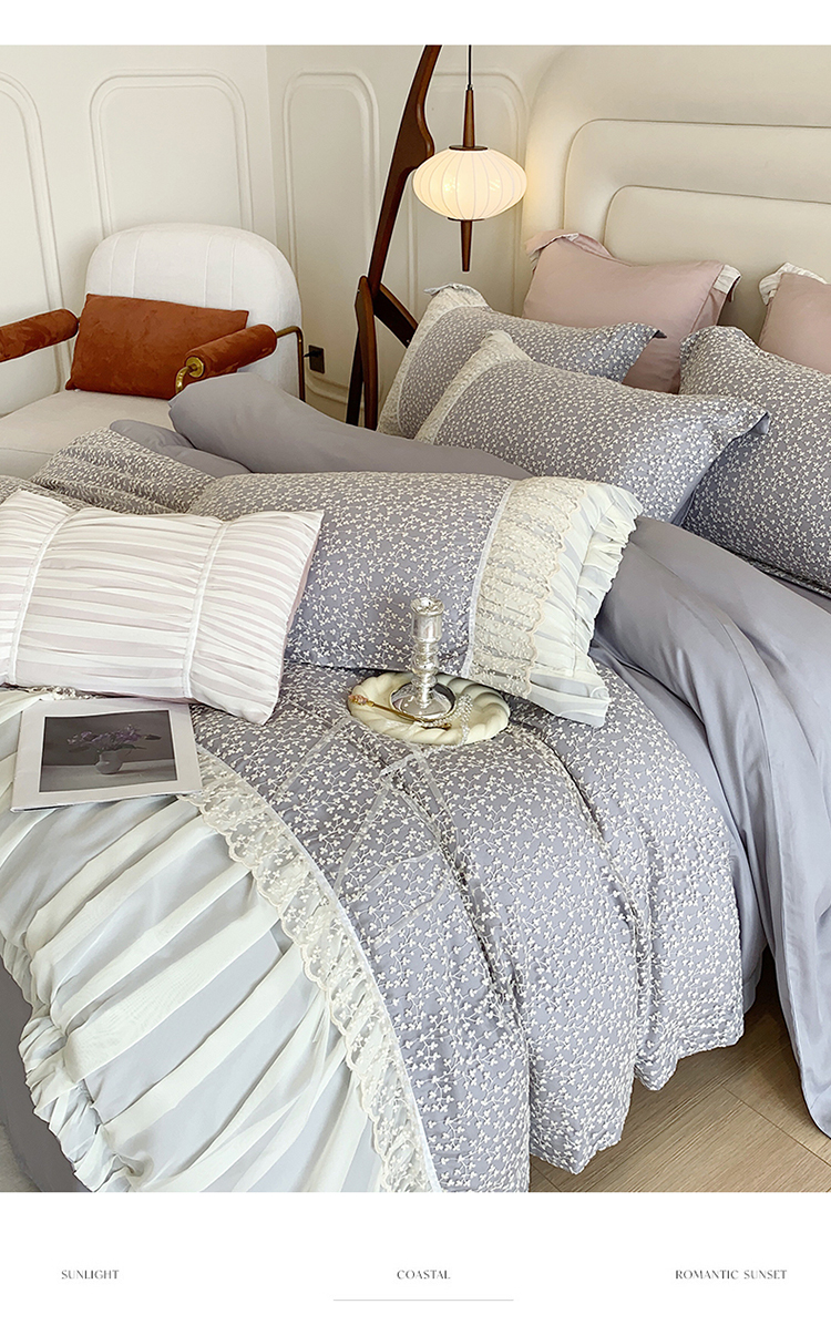(总)罗优家纺 2025新款柔梦花边款暖绒四件套,暖杏色,柔雾蓝,柔雅灰,甜梦粉