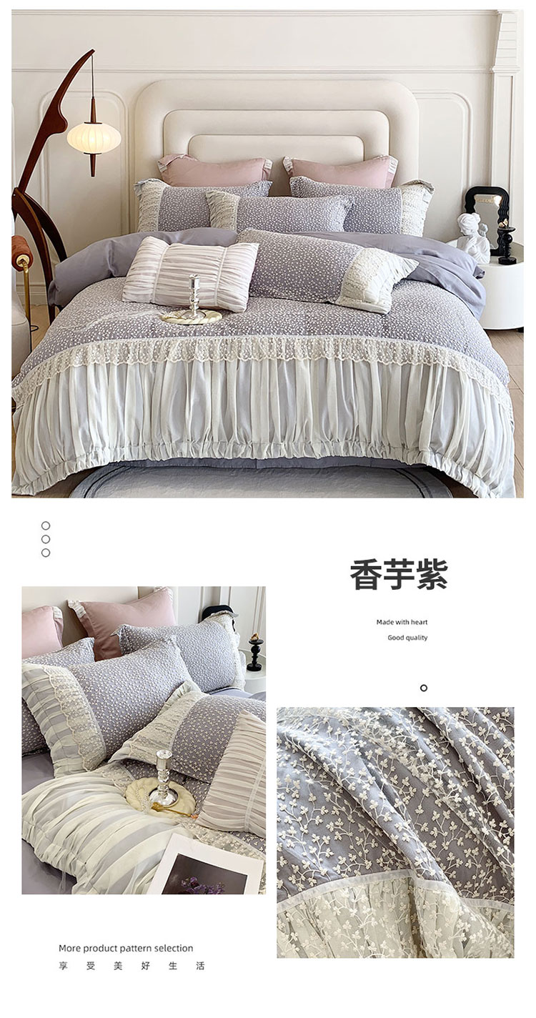 罗优家纺 2023新款法式浪漫天丝四件套 香芋紫