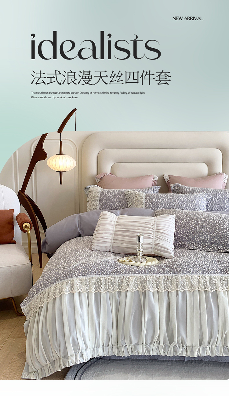 商品名称:罗优家纺 2023新款法式浪漫天丝四件套 香芋紫