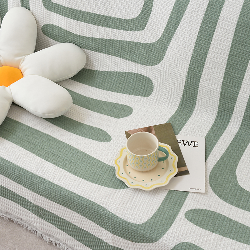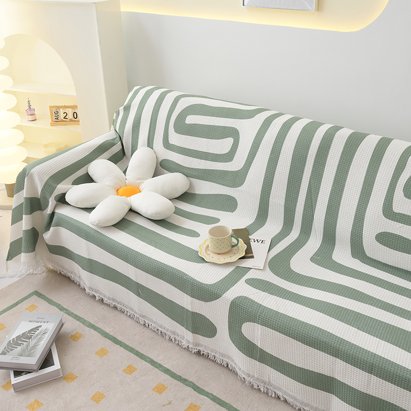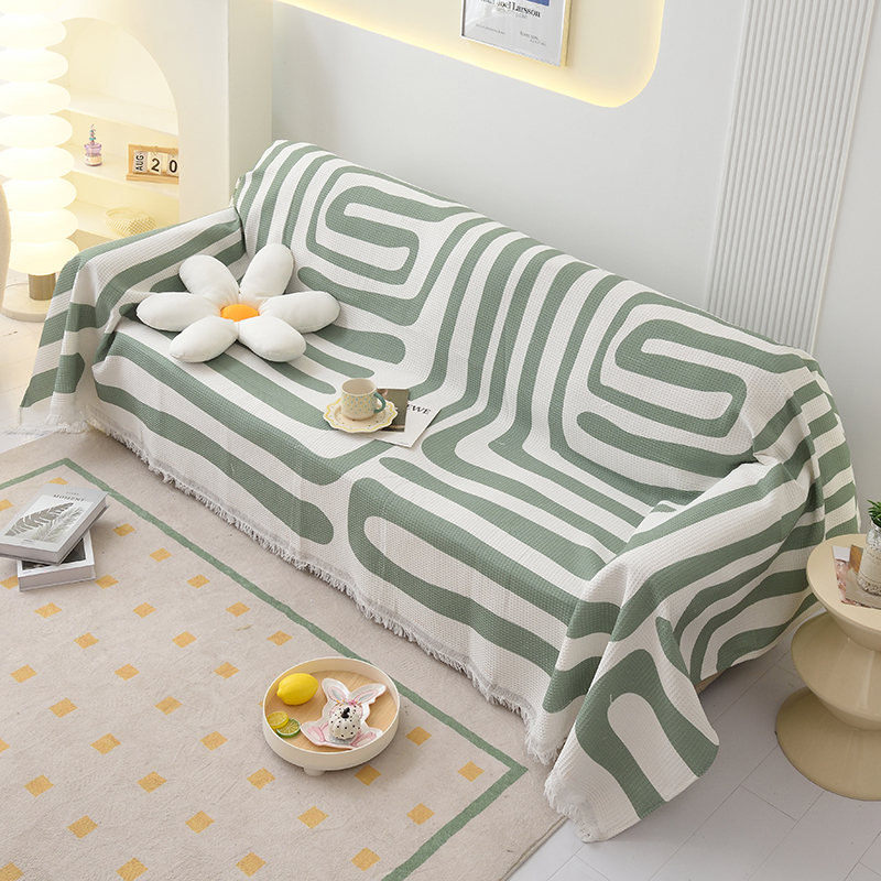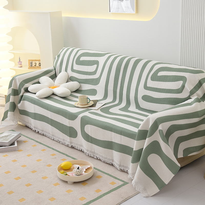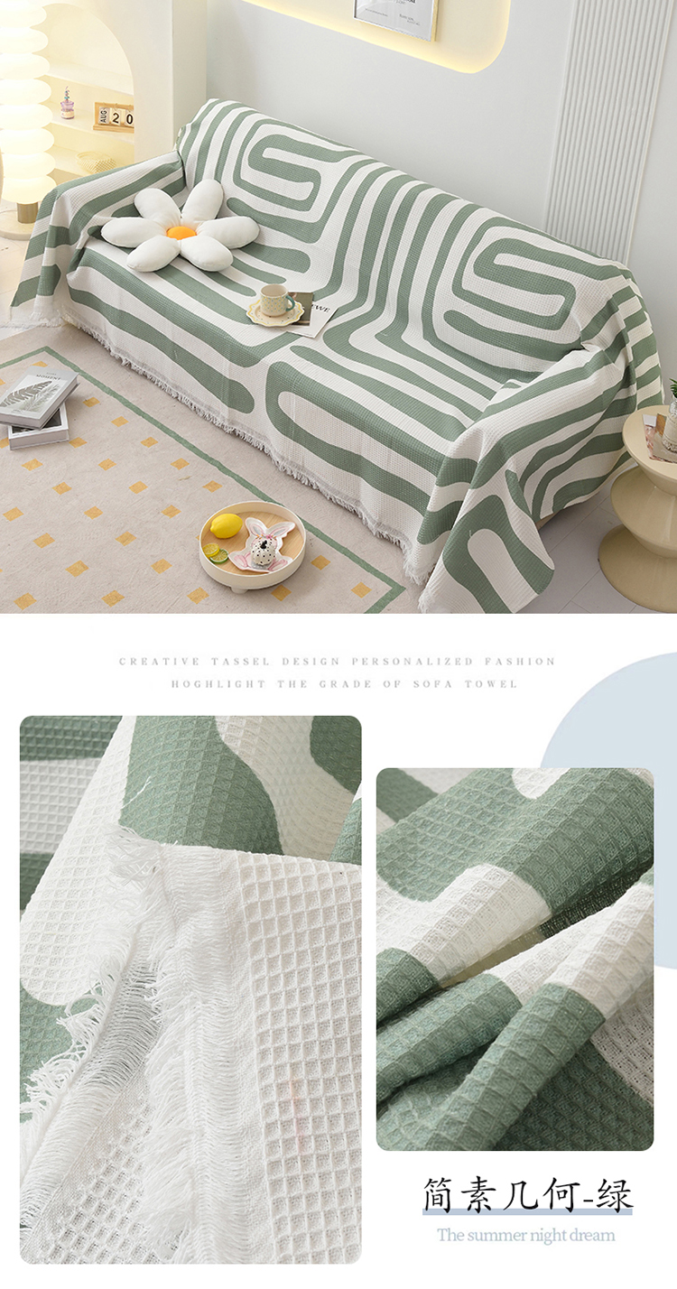 当前位置: 91家纺网 > 商品网购 > 居家布艺 > 坐垫/椅垫/沙发垫 > 沙发垫 > 启博家纺 2023爆款针织棉线沙发巾 简素几何-绿