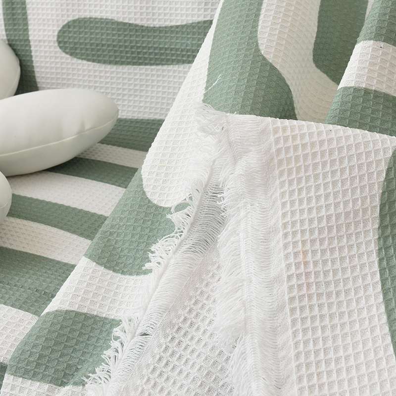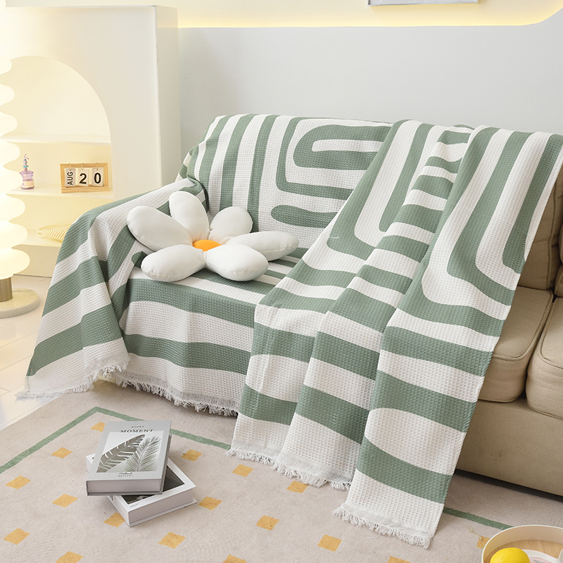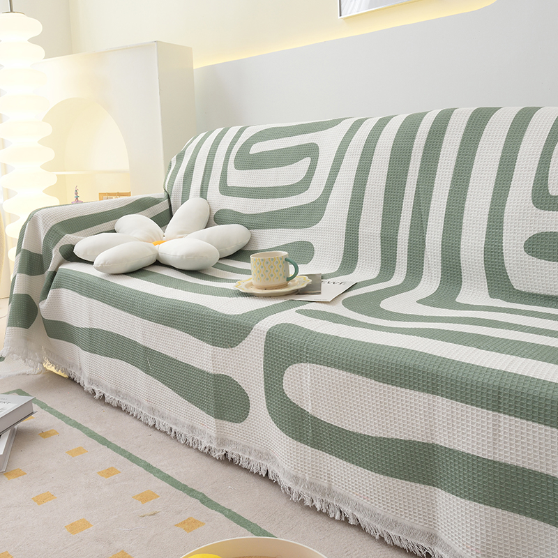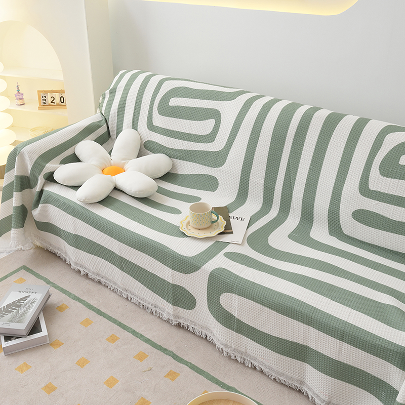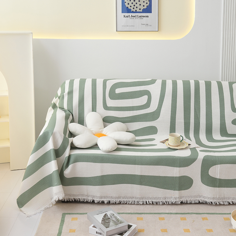 当前位置: 91家纺网 > 商品网购 > 居家布艺 > 坐垫/椅垫/沙发垫 > 沙发垫 > 启博家纺 2023爆款针织棉线沙发巾 简素几何-绿