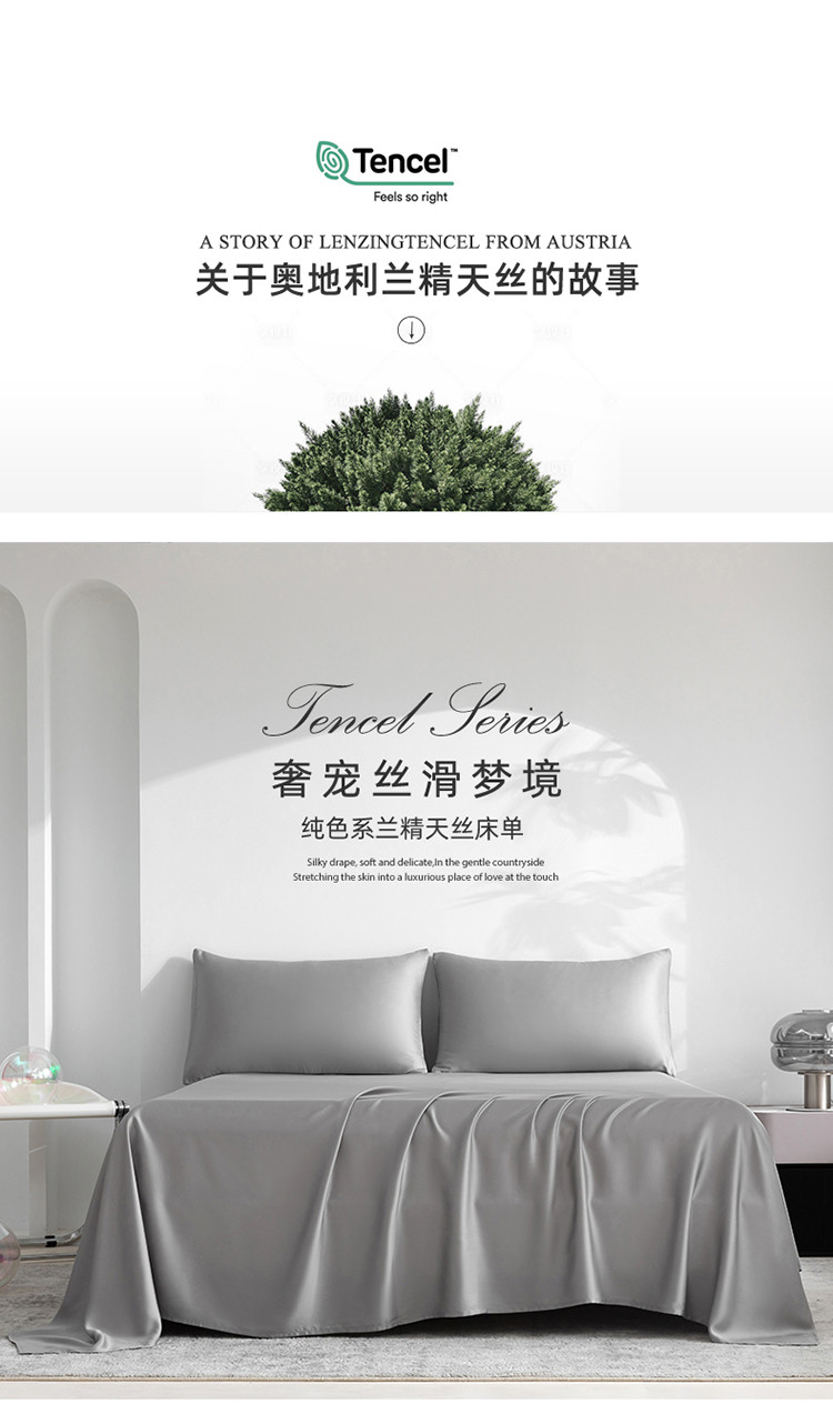商品名称:轩和 2025新款50支纯色天丝单床单 伯爵灰