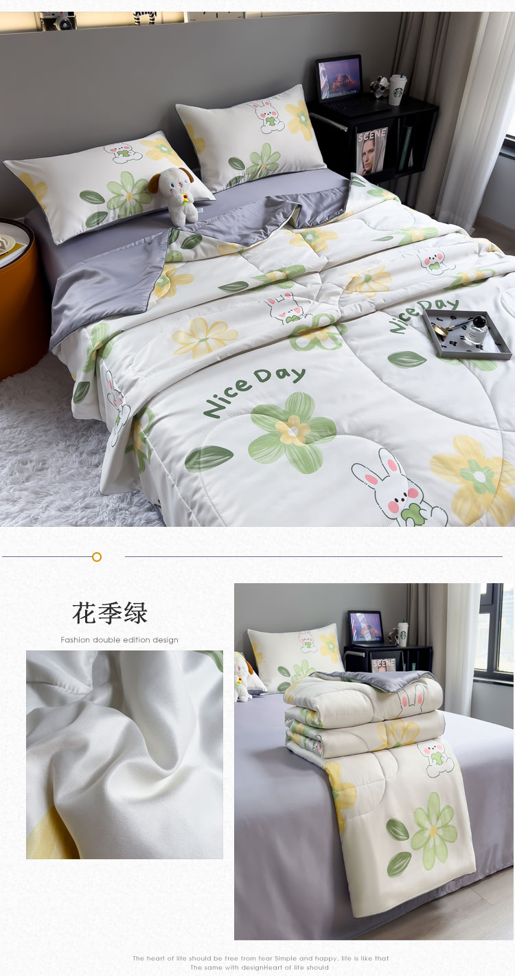 新款夏凉被空调被可机洗儿童被夏季双人夏被四件套 花季绿