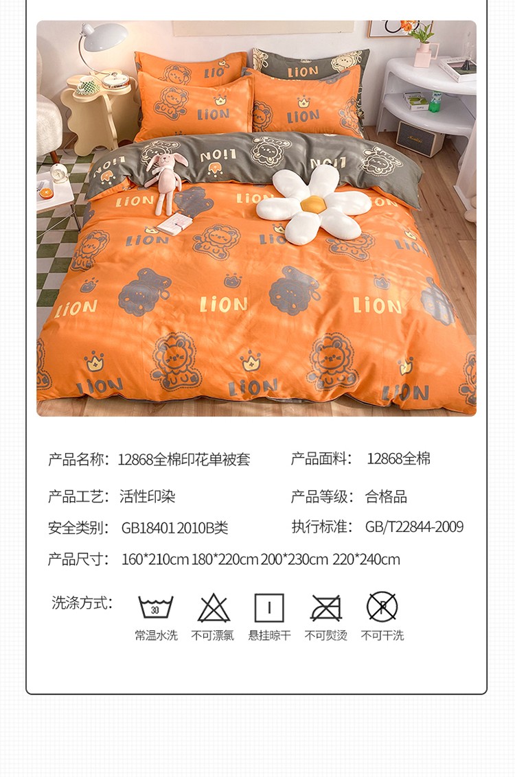 商品名称:多品 2023新款12868全棉印花单被套系列第二批 狮子王—黄