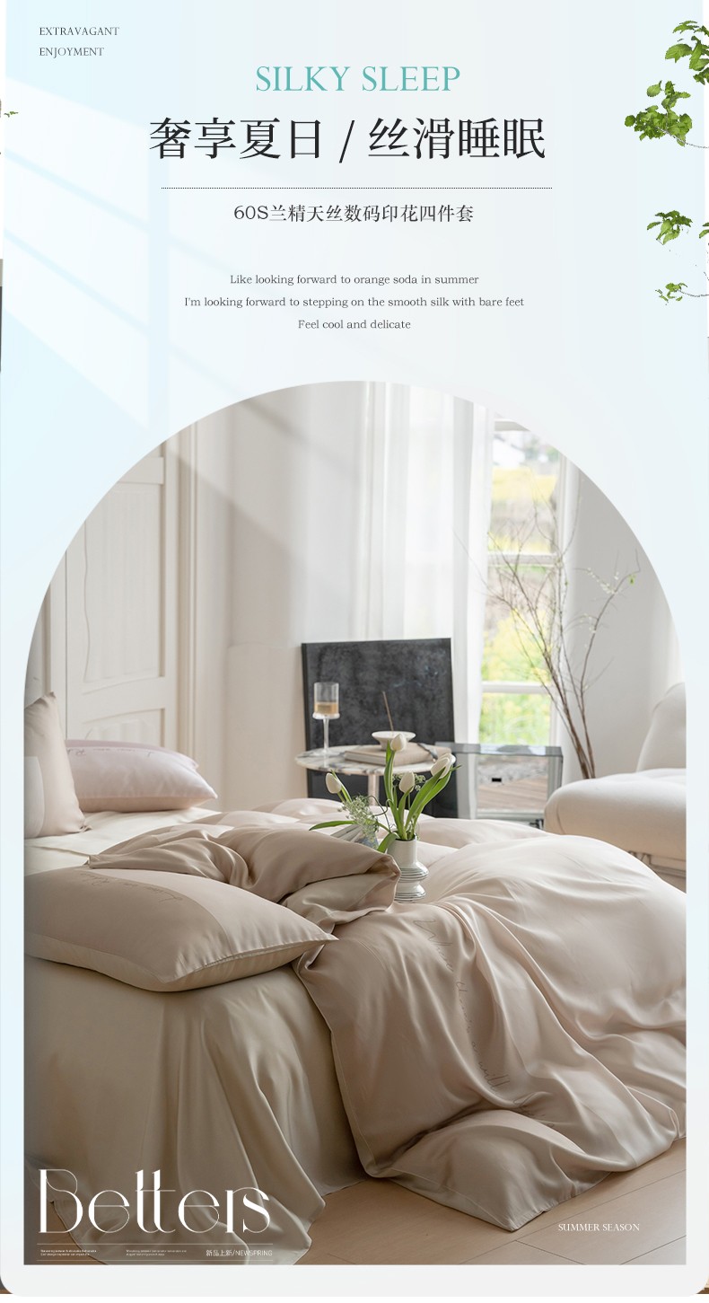 当前位置: 91家纺网 > 商品网购 > 床品套件 > 四件套 > 莱赛尔四件套 > 沐晴 2023新款数码印花60S兰精天丝纯色简约轻奢四件套 霍瓦纳