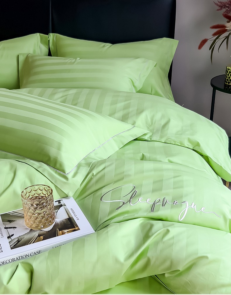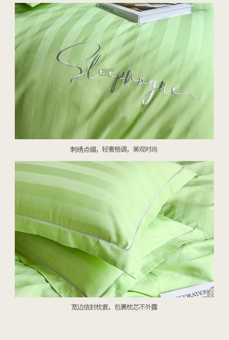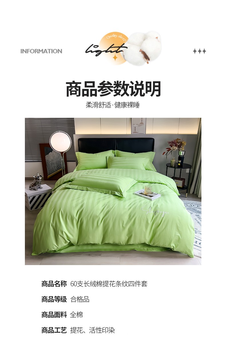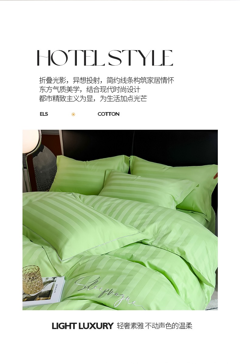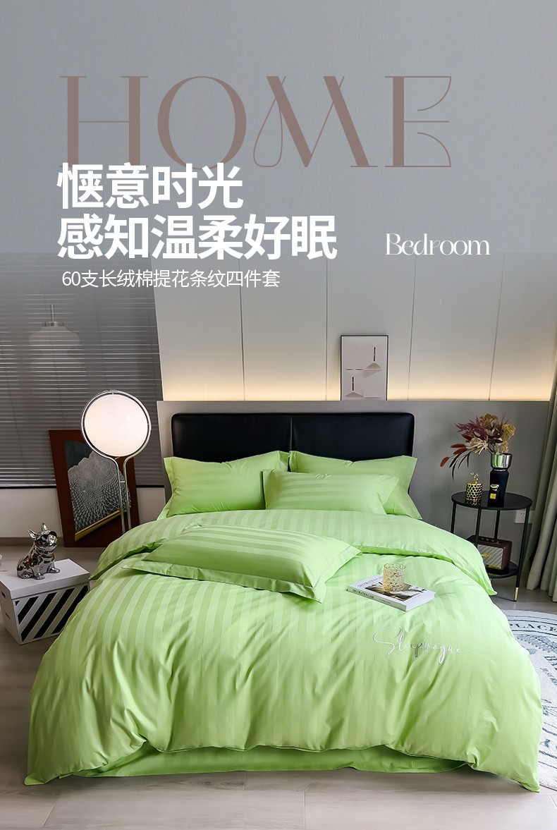 当前位置: 91家纺网 > 商品网购 > 床品套件 > 四件套 > 长绒棉四件套 > 慕尚 2025新款60支长绒棉提花条纹系列四件套 条纹浅绿