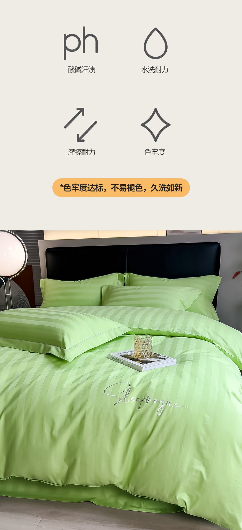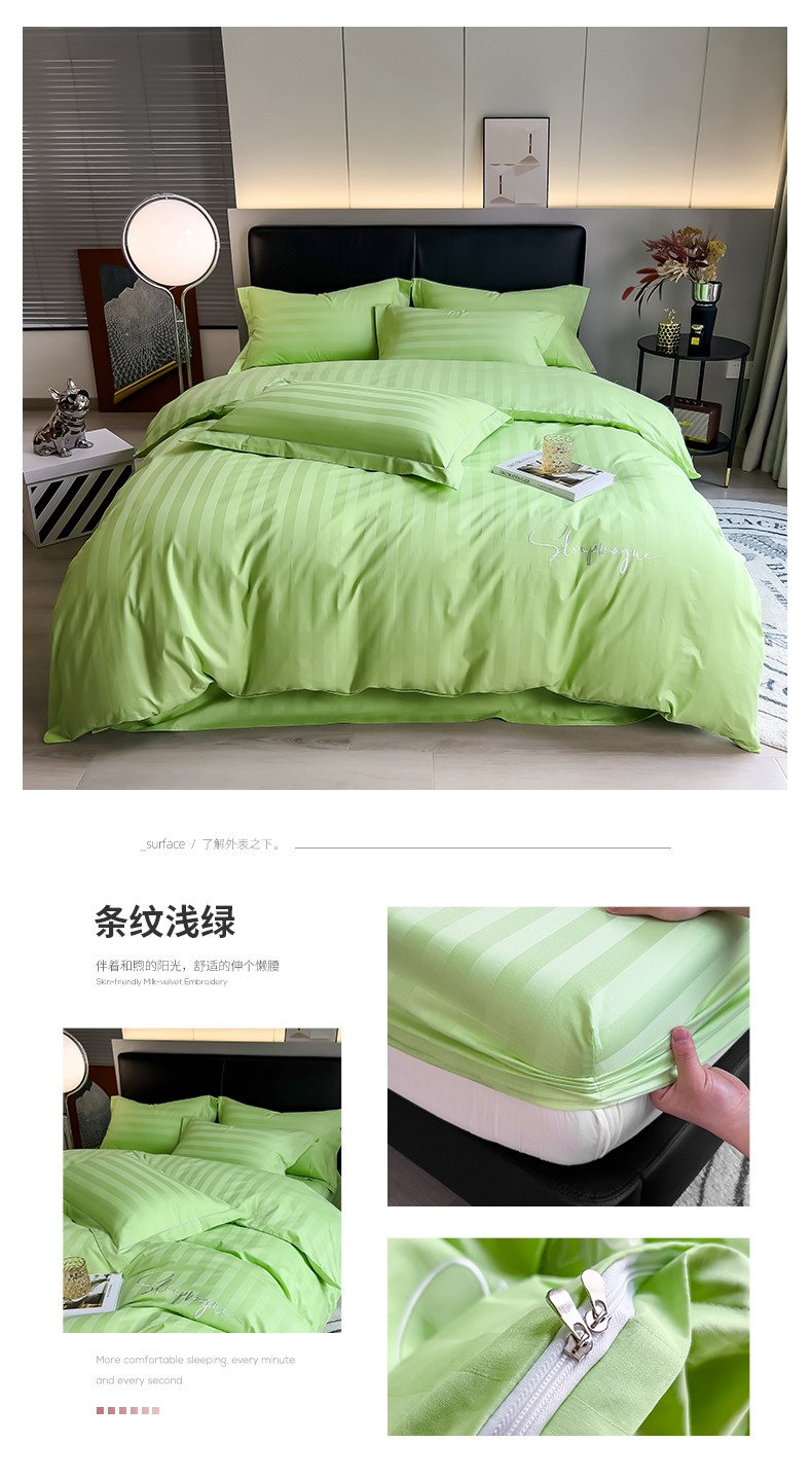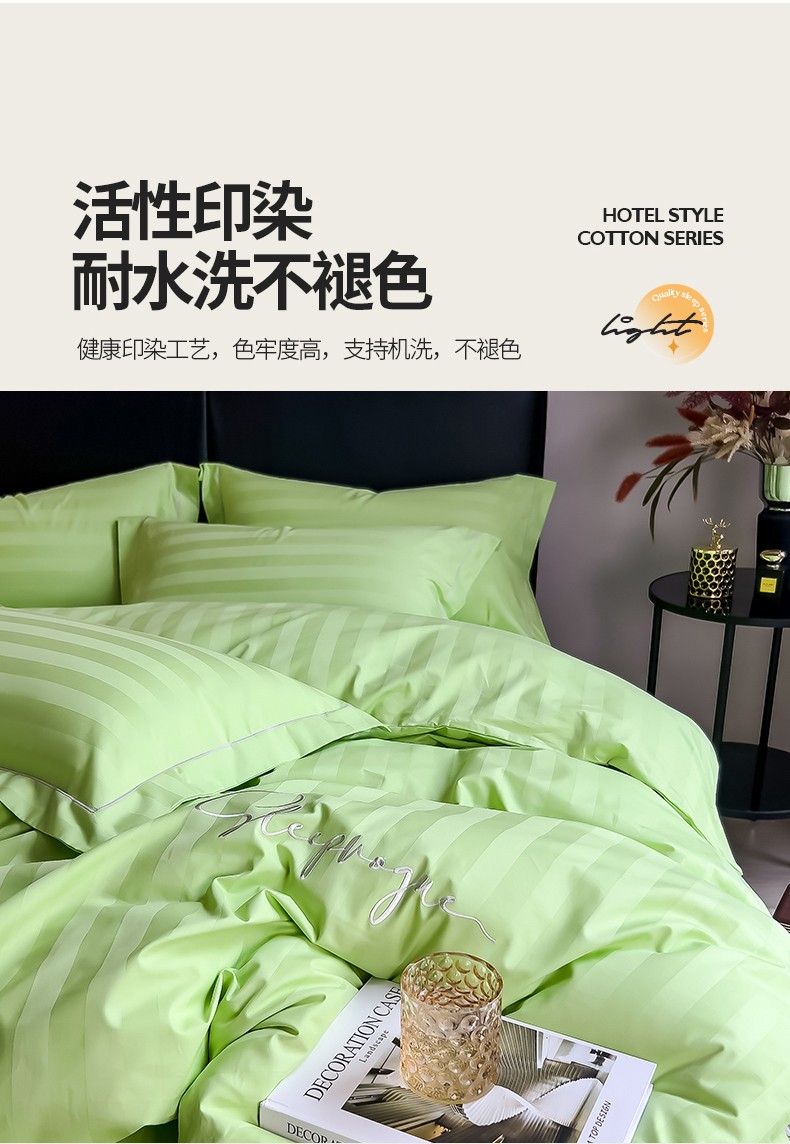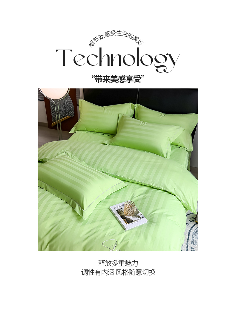 当前位置: 91家纺网 > 商品网购 > 床品套件 > 四件套 > 长绒棉四件套 > 慕尚 2025新款60支长绒棉提花条纹系列四件套 条纹浅绿